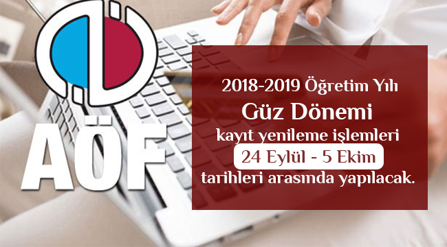 2018 AÖF Kayıt Yenileme 24 Eylül - 5 Ekim de