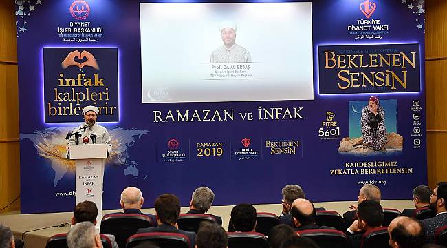 Diyanet İşleri Başkanlığı 2019 yılı Ramazan ayı temasını belirledi.Diyanet İşleri Başkanı Prof. Dr. Ali Erbaş, İstanbul’da İslam Araştırmaları Merkezi’nde gerçekleştirilen basın toplantısında 2019 yılı ramazan ayı temasını kamuoyu ile paylaştı.Diyanet İşleri Başkanı Erbaş, burada yaptığı konuşmada, 5 Mayıs Pazar günü ilk teravih namazının kılınacağını ve 6 Mayıs Pazartesi günü de ilk orucun tutulacağını ifade ederek, “Gelişiyle gönüllerimizi aydınlatan rahmet ve bereket mevsimi Ramazan ayının kalplerimize huzur, hanelerimize bereket, ailemize, ülkemize ve İslâm âlemine hayırlar getirerek insanlığın hidayet ve barışına vesile olmasını Cenâb-ı Hakk’tan niyaz ediyorum” dedi.Başkan Erbaş, diyanet İşleri Başkanlığı olarak her Ramazan ayında İslam’ın hayat veren ilkelerinden birini gündeme taşıdıklarını belirterek, “Bu yıl da yardımlaşmanın, dayanışmanın ve kaynaşmanın kilit kavramlarından biri olan “infak” temasını gündeme taşıyoruz. “Ramazan ve İnfak” birbiriyle bütünleşen iki yüce değer olarak bu yıl oruç ayında gerçekleştireceğimiz faaliyetlerimize mihver olacak. “İnfak Kalpleri Birleştirir” sloganıyla müminleri maddi ve manevi anlamda infakta bulunmaya, yarım hurmayla da olsa korunmaya, arınmaya ve gönüllerimizi buluşturmaya davet ediyoruz” diye konuştu.Başkan Erbaş, ayrıca Türkiye Diyanet Vakfı olarak “Kardeşlerini Unutma! Beklenen Sensin” çağrısıyla sınırları aşan bir iyilik daveti yaptıklarını dile getirerek “Özellikle bu yıl “Kardeşliğimiz Zekâtla Bereketlensin” sloganıyla, bütün dünyanın ihtiyaç duyduğu, özlemini çektiği eşsiz bir yardım sistemi olan zekât ibadetini gündem yapıyoruz” ifadelerini kullandı.“Ramazan, kulluk yönündeki istikametimizi tahkim etmek için eşsiz bir fırsattır”Başkan Erbaş, Ramazan ayının sahuru, iftarı, teravihi, mukabelesi, itikâfı, Kadir Gecesi ve daha birçok feyiz ve bereketiyle Müminler için büyük bir nimet ve Allah’ın yeryüzüne rahmetinin açık bir tecellisi olduğunu söyledi.Ramazanın müminlerin günah ve hatalarından temizlenmek için önemli bir fırsat olduğuna işaret eden Başkan Erbaş, “Ramazan, dünyanın baş döndürücü kuşatması altında daralan ruhlarımızı teskin etmek, bunalan gönüllerimize inşirah vermek, kulluk yönündeki istikametimizi tahkim etmek için eşsiz bir fırsattır. Ramazan bir bağışlanma mevsimidir. Nitekim Sevgili Peygamberimiz bir hadislerinde; “Bir kimse, inanarak ve sevabını sadece Allah’tan bekleyerek, Ramazan orucunu tutarsa, geçmiş günahları bağışlanır” buyurmuştur” diye konuştu.“Bütün ibadetlerin en temel amaçlarından ve hikmetlerinden biri de, insanları ahlaklı, duyarlı, sorumlu bireyler yapmak ve bu güzellikleri toplumsal hayatın merkezi haline getirmektir” diyen Başkan Erbaş, şöyle devam etti:“Oruç ibadetinde de asıl amaç; kalbin, aklın, duyuların oruçla bütünleşmesi ve kulun ibadet bilinci, dua ve güzel ahlak ile Rabbiyle buluşmasıdır. Eğer hakkıyla idrak ve ihya eder, hikmet, nimet ve güzelliklerini iyi değerlendirirsek Ramazan ayı, hayatı bir okula, bütün yeryüzünü bir mabede, dünyayı cennetten bir huzura dönüştürecektir.”“İftar sofralarımız garip, yoksul, akraba, dost ve komşularımızla buluşma sofralarımız olsun”Başkan Erbaş, Ramazan atmosferinin neşe ve coşkusunun en fazla yaşandığı yerin, iftar sofraları olduğunu dile getirerek, “Bu huzuru ve güzelliği bütün boyutlarıyla yaşamak için iftar sofralarımız garip, yoksul, muhtaç, akraba, dost ve komşularımızla buluşma sofralarımız olsun. İftar sofraları, işvereni çalışanıyla, amiri memuruyla, evladı anne-babasıyla, zengini fakir ile iman, kulluk ve kardeşlik düzleminde buluştursun” ifadelerini kullandı.İsraf ve gösterişten uzak durulmasına işaret ederek, “ Gereksiz şatafat, gösteriş ve israf ile sofralarımızın bereketine ve güzelliğine gölge düşürmeyelim” uyarısında bulundu.Başkan Erbaş, özellikle Ramazan ayında insanların daha fazla yardım yaptığını ifade ederek, “Yardımları, infak adabına, ihsan ahlakına uygun olarak, incitmeden, gösterişe asla kapılmadan yapalım. Kibir ve gösterişin karıştığı yardımların Rabbimiz katında hiçbir değeri ve karşılığı yoktur. Kaba ve incitici şekilde yapılan iyilikler, mümin nezaketine ve zarafetine asla yakışmaz” şeklinde konuştu.Türkiye’nin yıllardır muhacir, mülteci kardeşlerine ensar olduğunu belirten Başkan Erbaş, “Ramazanda ensar olma özelliğimizi arttıralım. Ülkemize sığınan hiçbir kardeşimiz, misafirimiz, muhacirimiz kendini gurbette hissetmesin, garip kalmasın, mahzun olmasın” dedi.“Oruçlarımızı, Rabbimizin rızasına muvafık olan söz, eylem ve tutumlarla destekleyerek tutalım”Başkan Erbaş, Ramazan ayının bir tefekkür mevsimi olduğunun altını çizen Başkan Erbaş, şöyle konuştu:“Kendimizi, bütün niyet, söz ve davranışlarımızla külli bir muhasebeye tabi tutalım. Hoşnut olmadığımız; İslam’ın izzetine, müminin iffetine, güzel ahlakın asaletine yakışmayan bütün tutum ve davranışlarımızı bu mübarek zamanı vesile kılarak terk edelim. Oruçlarımızı, Rabbimizin rızasına muvafık olan söz, eylem ve tutumlarla destekleyerek tutalım. Bu şehrâyin havasına evlerimizdeki çocuklarımızı da mutlaka dâhil edelim. İbadetlerimizi ahlaka, ilişkilerimizi samimiyet ve muhabbete, hayatımızı ramazan iklimine dönüştürebilirsek, dünyamız da ahiretimizde bayram olacaktır.”“Vatandaşlarımız gönül rahatlığıyla yardımlarını TDV’ye emanet edebilirler”Başkan Erbaş, Türkiye Diyanet Vakfının Diyanet İşleri Başkanlığının öncülüğünde Türkiye’de ve dünyanın her yer