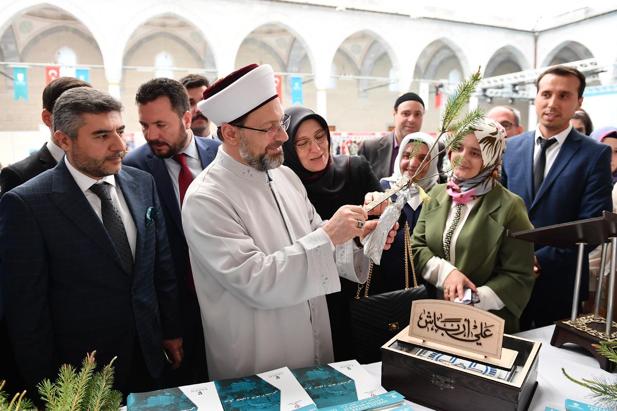 İnsanın ulvi bir amaçla dünyaya gönderildiğini kaydeden Başkan Erbaş, “Ulvi bir amaçla dünyaya gönderilen insana yaratıcının gösterdiği en büyük ideal, yaratılış gayesine uygun biçimde dünya hayatını şekillendirmek, yeryüzünde iyiliğin hakim olması için çalışmak ve nihai hedef olarak Yüce Allah'ın hoşnutluğunu kazanmaktır” diye konuştu.Başkan Erbaş, erdemin, hak duyarlılığını hayata hakim kılmak, hiçbir ayrım yapmadan herkes için din, can, akıl, mal ve neslin dokunulmazlığını kabul etmek olduğunu belirterek , "Erdemli davranışın kaynağı kişinin hür tercihi ve özgür iradesidir. İnsanın izzet ve asaletinin ölçüsü de bütün düşünce, tavır ve davranışlarında inanç, erdem ve insan olma değerini esas alarak hür tercihiyle hareket etmesidir." yorumunda bulundu.Başkan Erbaş sözlerini şöyle sürdürdü:"Modern zamanın en popüler kavramlarından biri olan hürriyet, daha kapsamlı bir muhasebeyle yeniden ele alınmaya muhtaçtır. Zira kölelik için demir zincirlerin kullanılmadığı günümüzde insanın onurunu zedeleyen, değerini, haklarını, şahsiyetini, kazanımlarını ve tercihlerini yok sayan her türlü unsur, köleleştirmenin enstrümanı haline gelmiştir. Belki ayakları, elleri demir zincirlerle prangaya vurulmuyor ama gönlü, kalbi, yüreği, insanı özgürlükten uzaklaştıran ve tutsak haline getiren o kadar çok engel, vasıta ve unsurla köleleştiriliyor ki insan, bunlardan da neslimizi korumamız gerekiyor.Bu noktadaki nihai çözüm, Allah'ın iradesine teslim olarak, beşerin iradesine de eşyaya mahkûm olmaktan kurtulmaktır. Bu itibarla daha güzel bir dünya idealiyle hür iradesini sorumluluklarıyla bütünleştirerek, erdemli bir hayatın inşası için çalışmak hepimizin en önemli gayesi olmalıdır."Başkan Erbaş, Dünya birincisi liselileri kutladıErbaş açılış programında, Katar'ın başkenti Doha'da düzenlenen 4. Uluslararası Arapça Münazara Şampiyonası'nda birinci olan İzmit Mehmet Akif Ersoy Kız Anadolu İmam Hatip Lisesi öğrencilerini de kutlayarak ödüllendirdi.Konuşmaların ardından fuarın açılış töreni Başkan Erbaş tarafından gerçekleştirildi. Başkan Erbaş ve beraberindeki heyet açılış töreninin ardından, stantları gezerek yetkililerden bilgi aldı.Açılış törenine Başkan Erbaş ve eşi Seher Erbaş’ın yanısıra, Din Hizmetleri Genel Müdürü Bünyamin Albayrak, Dini Yayınlar Genel Müdürü Fatih Kurt, Türkiye Diyanet Vakfı Genel Müdürü Mehmet Savaş Polat, kurumun üst düzey yöneticileri ve gençler katıldı.Ankara Kocatepe Camii avlusunda açılan ve ana teması “irade-erdem ve hürriyet” olan fuarda 27’si ulusal, 11’i ise uluslararası olmak üzere 38 sivil toplum kuruluşu yer alıyor. Fuar 8 Mayıs Salı akşamı saat 21:30’a kadar açık kalacak.