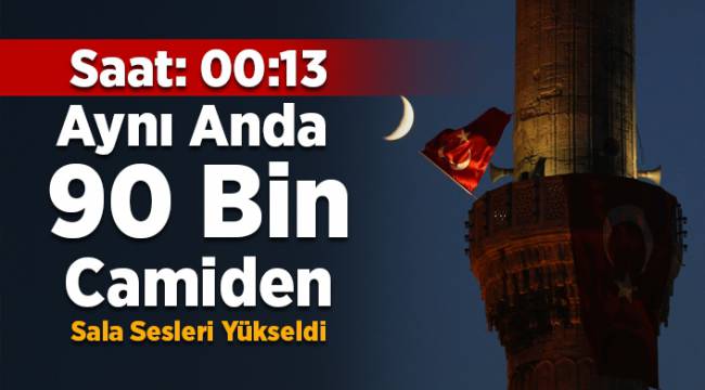 Fetullahçı Terör Örgütü'nün (FETÖ) 15 Temmuz 2016'daki hain darbe girişiminde birlik ve beraberliğin sembolü selalar, bu gece Türkiye genelinde 90 bin camide tekrar okundu.Diyanet İşleri Başkanlığınca düzenlenen programlar çerçevesinde, 15 Temmuz hain darbe girişimi sırasında millete ihanete karşı birlik ruhu aşılayan ve manevi bir güç sağlayan sela sesi, saat 00.13 itibarıyla Türkiye genelindeki 90 bin camide aynı anda yeniden yükseldi. Kocatepe Camii'nden okunan sela, merkezi sistemle başkentteki tüm camilere ulaştırıldı. Öte yandan bu gece cami ve minarelerin ışıkları sabah namazına kadar açık tutulacak.