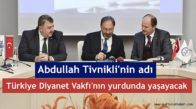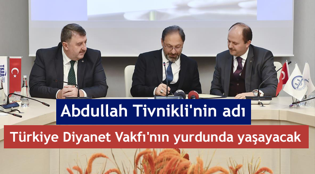 Türkiye diyanet Vakfı (TDV) ile Türkiye Katılım Bankaları Birliği (TKBB) arasında İstanbul'da bağış protokolü imzalandı.Diyanet İşleri Başkanı ve Türkiye Diyanet Vakfı Mütevelli Heyeti Başkanı Prof. Dr. Ali Erbaş ile Türkiye Katılım Bankaları Birliği Yönetim Kurulu Başkanı Metin Özdemir’in imzaladığı bağış protokolüyle Bursa’da bir yükseköğrenim öğrenci yurdu, TDV’ye bağışlanmış oldu. Bağışlanan yurda, geçtiğimiz ay vefat eden hayırsever iş insanı Abdullah Tivnikli’nin adı verildi.İmza öncesinde konuşan Diyanet İşleri Başkanı Erbaş, protokolün hayırlara vesile olmasını diledi. Türkiye Diyanet Vakfı’nın Türkiye’deki en büyük vakıf ve hayır kuruluşu olduğunu belirten Başkan Erbaş, “Vakıflar, en önemli hayır vasıtalarıdır. Faizsiz finans kurumlarının Türkiye Diyanet Vakfı ile bu şekilde iş birliği yapmış olması hem milletimize, hem yurt içinde hem yurt dışında hayrı ulaştırmamız gereken kardeşlerimiz adına büyük bir gelişme sağlayacaktır” dedi.Konuşmasında TDV’ye bağışlanan Bursa’daki yurdun ismini de açıklayan Başkan Erbaş, “Yurdun adı Türkiye Diyanet Vakfı Abdullah Tivnikli Öğrenci Yurdu olacaktır. Bu vesile ile kısa bir zaman önce ahirete irtihal etmiş Abdullah Tivnikli kardeşimize de Rabbim’den rahmet diliyorum. Onun mekânı cennet olur inşallah” diye konuştu.