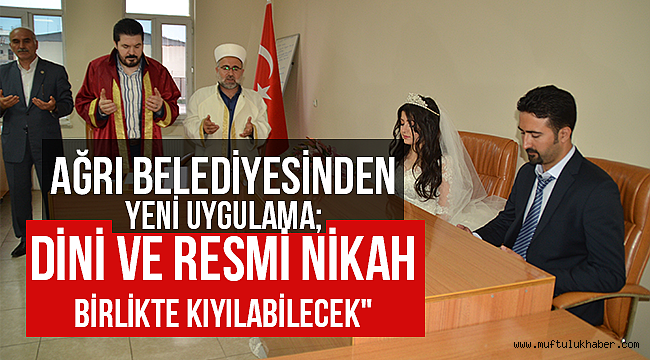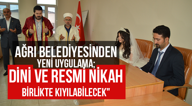 Evlenmek için belediye başkanlığına başvuran çiftlerin istekleri üzerine artık dini nikahları da resmi nikahları ile kıyılabilecek. Yeni dönemin ilk dini ve resmi nikahı birlikte kıyılan çifti Fatma ve Rojhat oldu. İlk olarak imam tarafından dini nikahları kıyılan çiftin resmi nikahı da Ağrı Belediye Başkanı Savcı Sayan tarafından kıyıldı.