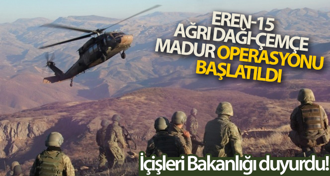 “Bölücü terör örgütünü ülke gündeminden tamamen çıkarmak ve bölgede barındığı değerlendirilen teröristleri etkisiz hale getirmek maksadıyla Ağrı, Iğdır, Kars, Ardahan illerinde 'Eren-15 Ağrı Dağı-Çemçe Madur Operasyonu' başlatıldı. Operasyonda Erzurum Jandarma Bölge Komutanlığı sevk ve idaresinde Jandarma Komando, Jandarma Özel Harekat (JÖH), PÖH ve Güvenlik Korucu timlerinden oluşan 2 bin 65 personel (135 operasyonel tim) görev alıyor.