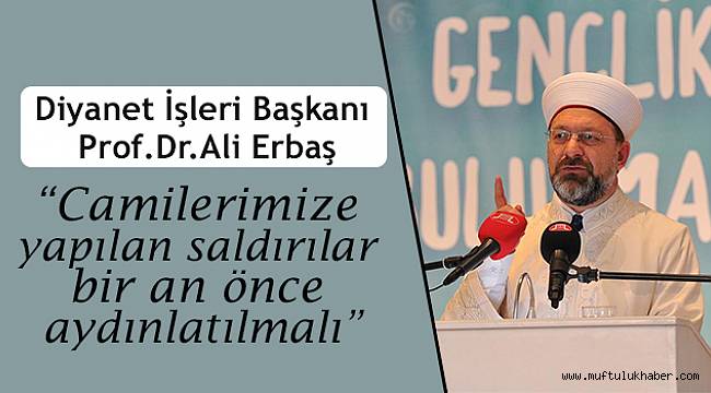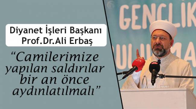 Başkan Erbaş, camilere yönelik saldırıların önlenmesi için tedbir alınmasının önemine işaret ederek, "Buradan şunu da açıkça ifade etmek isterim, camilerimize yapılan saldırılar bir an önce aydınlatılmalı ve bundan sonra da herhangi bir saldırı olmaması için gerekli tedbirler alınmalıdır. Camiler, bir bölgede Müslüman neslin varlığına işaret eden en önemli sembollerdir. Bizler gittiğimiz şehirlerde bir cami, mescit görürsek, kendimizi huzurlu hissederiz" şeklinde konuştu.