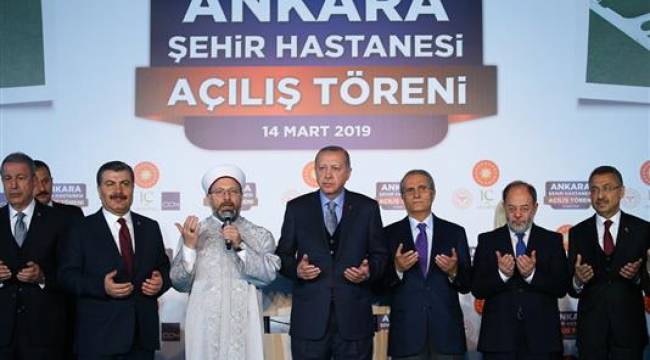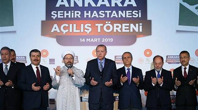 Bilkent'teki Ankara Şehir Hastanesi Türkiye Cumhurbaşkanı Recep Tayyip Erdoğan’ın katılımıyla düzenlenen törenle açıldı.Diyanet İşleri Başkanı Prof. Dr. Ali Erbaş’ın açılış öncesi dua yaptığı törene, Cumhurbaşkanı Yardımcısı Fuat Oktay, Ticaret Bakanı Ruhsar Pekcan, Milli Savunma Bakanı Hulusi Akar, Sağlık Bakanı Fahrettin Koca ve çok sayıda davetli katıldı.Cumhurbaşkanı Recep Tayyip Erdoğan törende yaptığı konuşmada 14 Mart Tıp Bayramı'nı kutlayarak, "Canımızı emanet ettiğimiz sağlık çalışanlarımızı yılın bir günü değil, her günü baş taçı etsek yeridir. Her meslek önemlidir ve hürmeti hak eder ama sağlık konusu herhalde bu listenin en tepesinde yer alır. Buna rağmen sağlık çalışanlarımıza yönelik zaman zaman duyduğumuz saldırıların asla affedilir, hafife alınır bir tarafı yoktur" dedi.Sadece 618 olan ambulans sayısını, helikopter, tekne, motor ve paletli ambulanslar dahil en modern cihazlarla donatılmış 5 bin ambulans sayısına yükselttiklerini vurgulayan Cumhurbaşkanı Erdoğan, "Türkiye, bugün bırakın hastanelerde sunulan hizmetleri, 1 milyon 250 binin üzerinde vatandaşımıza evde sağlık hizmeti verebilen bir ülke haline gelmiştir. Dünyada bunun benzeri yok. Eskiden vatandaşlarımız yurt dışına sağlık hizmeti almaya gidiyordu, şimdi ise yurt dışından sayıları milyonu bulan kişiler sağlık hizmeti almak için geliyor" değerlendirmesinde bulundu.Erdoğan, bu çalışmalarla yetinmeyip yepyeni bir sağlık hizmeti için kolları sıvadıklarını belirterek, "Şehir hastaneleri şahsımın sağlık sistemimizin zirvesi olarak gördüğüm bir hayaliydi. Hedefimiz hangi şikayetle olursa olsun şehir hastanesi alanına girenin başka yere gitme ihtiyacı duyulmadan tüm teşhis ve tedavisinin burada yapılmasıydı. Böylece hem hastalarımızın teşhis ve tedavi kurumlarında geçirecekleri zaman azalacak hem sağlık hizmetleri birbirini tamamlayacak şekilde sunulacak hem de hizmet kalitesi arttırılacaktır." ifadelerini kullandı.