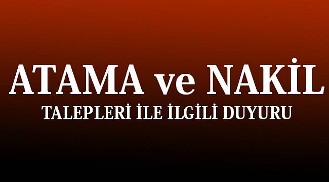 Atama ve Nakil Talepleri ile ilgili Duyuru