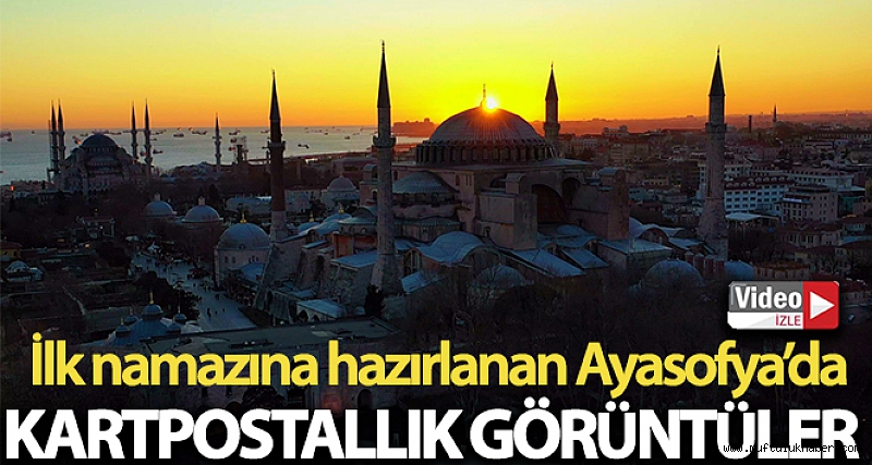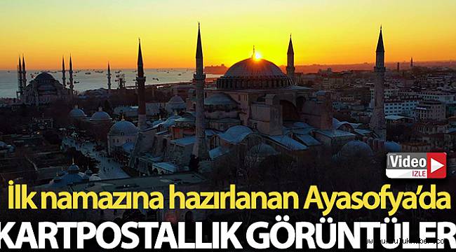 Cuma günü kılınacak ilk namaz için hazırlıkların sürdüğü Ayasofya Camii`nde gün batımı eşsiz görüntüler oluşturdu.