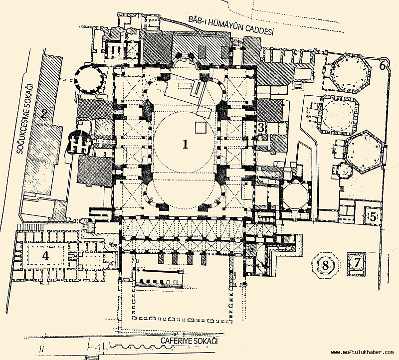 BİBLİYOGRAFYAGenel ve Mimari: G. Fossati, Aya Sophia of Constantinople as Recently Restored by Order of H. M. the Sultan Abdul-Medjid, London 1852.W. Salzenberg, Alt-christliche Baudenkmale von Constantinopel vom V. bis XII. Jahrhundert, Berlin 1854.W. R. Lethaby – H. Swainson, The Church of Sancta Sophia Constantinople: a Study of Byzantine Building, London 1894.E. M. Antoniades, Ekphrasis tes Hagias Sophias, Atina 1907-1909, I-III.C. Gurlitt, Die Baukunst Konstantinopels, Berlin 1907-12.G. A. Andreades, “Die Sophienkathedrale von Konstantinopel”, Kunstwissenschaftliche Forschungen, Berlin 1933, I, 33-94.Resimli Ayasofya Kılavuzu, İstanbul 1935.A. M. Schneider, Die Hagia Sophia zu Konstantinopel, Berlin 1939.E. H. Swift, Hagia Sophia, New York 1940.P. M. Michelis, L’esthétique d’Hagia-Sophia, Faenza 1963.P. Sanpaolesi, Santa Sofia a Constantinopoli [Forma et Colore], Firenze 1965.F. Dirimtekin, Ayasofya Kılavuzu, İstanbul 1966.R. L. Van Nice, Saint Sophia in Istanbul: an Architectural Survey, Washington, ts. [1967].G. Bonfiglioli, Sainte Sofia di Constantinopoli L’architettura, Bologna 1974.Bizans Devri: J. Ebersolt, Sainte Sophie de Constantinople, Paris 1910.Johannes von Gaza, Paulus Silentiarius und Prokopios von Gaza, Kunstbeschreibungen Justinianischer Zeit (nşr. P. Friedländer), Leipzig 1912; Hildesheim-New York 1969.W. R. Zaloziecky, Die Sophienkirche in Konstantinopel, Citta del Vaticano 1936.A. M. Schneider, Die Grabung im Westhof der Sophienkirche zu Istanbul, Berlin 1941.a.mlf., “Die Hagia Sophia in der politisch-religiösen Gedankenwelt der Byzantiner”, Das Werk des Künstlers, II, Stuttgart 1941, s. 4-15.Muzaffer Ramazanoğlu, Sentiren ve Ayasofyalar Manzumesi, İstanbul 1946.H. Jantzen, Die Hagia Sophia des Kaisers Justinian in Konstantinopel, Köln 1967.D. Köhler – C. Mango, Hagia Sophia (trc. Ellyn Childs), London 1967.O. H. Strub-Roessler, “Die Hagia Sophia”, BZ, XLII (1943-49), s. 158-177.K. J. Conant, “The First Dome of St. Sophia and its Rebuilding”, Bulletin of the Byzantine Institut, I, Washington 1946, s. 71-78.Mozaikler: Th. Whittemore, “The Mosaics of St. Sophia at Istanbul”, First Preliminary Report, Oxford 1933.Second Preliminary Report, Oxford 1936.Third Preliminary Report, Oxford 1942.Fourth Preliminary Report, Oxford 1952.C. Mango, Materials for the Study of St. Sophia at Istanbul, Washington 1962.P. A. Underwood – E. J. W. Hawkins, “The Portrait of the Emperor Alexander”, Dumbarton Oaks Papers, XV, Washington 1961, s. 187-217.Türk Devri: Ayasofya’nın Türk devrindeki tarihçesi ve Türkler’in ona verdikleri değer hakkında henüz iyi ve toplu bir araştırma yapılmamıştır. İstanbul ve Avrupa kütüphanelerindeki yazma Târîh-i Binâ-yı Aya Sofya başlıklı risâleler ise bu hususlarda bilgi vermemektedir. Ayrıca bk. Ayvansarâyî, Hadîkatü’l-cevâmi‘, I, 3-7.A. Sami Boyar, Ayasofya ve Tarihi, İstanbul 1943.W. Emerson – R. Van Nice, “Sancta Sophia’s First Minaret Erected After the Conquest”, American Journal of Archaeology, XLVII (1943), s. 403 vd.M. A. Charles, “Ayasofya ve Büyük Camiler/Hagia Sophia and the Great Imperial Mosques”, The Art Bulletin, XII, New York 1930, s. 312-344.A. M. Schneider, “Sophienkirche und Sultansmoschee”, BZ, XLIV (1951), s. 509-516.Semavi Eyice, “İstanbul Minareleri”, Türk San‘atı Tarihi Araştırma ve İncelemeleri, İstanbul 1963, I, 36 vd., 51 vd.Azâde Akar, “Ayasofya’da Bulunan Türk Eserleri ve Süslemelerine Dair Bir Araştırma”, VD, IX (1971), s. 279-290.Erdem Yücel, “Ayasofya Onarımları ve Vakıf Arşivinde Bulunan Bazı Belgeler”, VD, X (1973), s. 219-220.“10 Temmuz 2020 tarih ve 2729 sayılı Cumhurbaşkanı Kararı”, Resmî Gazete, sy. 31181, 10 Temmuz 2020.R. Ekrem Koçu, “Ayasofya”, İst.A, III, 1439-1475.