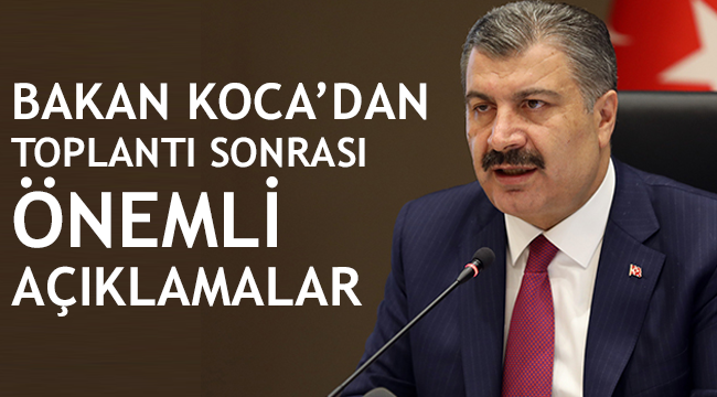 koca toplantının ana gündem konusunun aşı olduğunu bildirdi. Bugün itibariyle 50 milyon doz inaktif aşı için kesin anlaşma yapmış ve 3 milyon dozluk ilk bölümünü depolarımıza teslim alındığının bilgisini veren Koca, “Ayrıca mRNA temelli aşı için de bugün yine bir görüşme yaparak yeni tedarik planını gözden geçirdik. 4.5 milyon doz garanti ve 30 milyon doza kadar anlaşmamız imzalandı. Tedarik planı ile ilgili detaylar netleştikçe sizleri bilgilendirmeye devam edeceğim” açıklamasında bulundu.Koca, adenövirüs temelli Rusya ve İngiltere'de geliştirilen aşılar için de görüşmelerin devam ettiğini aktaran Koca, “Aşılama programına ilk olarak başlayacağımız inaktif aşı için bazı bilgileri açıklamak isterim. Bildiğiniz üzere bu aşının klinik çalışması ülkemizde yürümektedir. Aşılama programına başlayabilmek için aşı ile ilgili çalışmayı yürüten bilim insanlarımızdan ara sonuçları talep etmiştik. Gelen ara sonuçlara göre aşının yeterince güvenli ve etkili olduğunu anlamış olduk ve Acil Kullanım Onayı için süreci başlattık. Şu anda teslim edilen aşılar için güvenlik testleri devam etmektedir.Testler tamamlanır tamamlanmaz sonuçların uygun olması halinde Acil Kullanım Onayı verilecektir. Klinik araştırma safhasında ara sonuçları talep edip aşının güvenli olduğunu gördükten sonra araştırmayı yürüten bilim insanlarımıza artık yeni gönüllü kabul etmemeleri bildirildi. Aşının güvenli olduğu anlaşıldıktan sonra yeni gönüllü almaya devam etmemek gerekmektedir. Şu ana kadar 10.000'in üzerinde gönüllüye 17.700 doz aşı uygulanmış ve sonuçları takip edilmeye devam edilmektedir. İnaktif aşının menşei ülkede uzun zamandır Acil Kullanım Onayı bulunmaktadır. Acil Kullanım Onayı verilirken çalışma ile ilgili en güncel veriler incelenecektir” ifadelerine yer verdi.Aşı çalışmasının devam ettiği bir diğer ülke olan Endonezya ile iletişimlerinin sürekli olarak devam ettiğinin bilgisini veren Koca, “Karşılıklı bilgi paylaşımı düzenli olarak sağlanmaktadır. Endonezya'da aşılama takviminin 13 Ocak'ta başlayacağı öğrenilmiştir. Çalışmanın devam ettiği Brezilya'da ise bugün sonuçlar açıklanmış ve aşının hafif vakalarda \%78, orta ve ağır vakalarda \%100 etkili olduğu açıklanmıştır. Brezilya'da yürütülen çalışma sadece virüse en çok maruz kalan grup olan sağlık çalışanlarında yapılmıştır. Karşılıklı bilgi paylaşımımız devam edecektir” dedi.