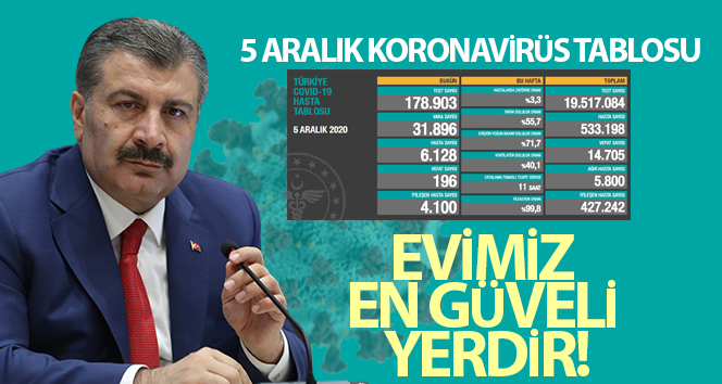 Sağlık Bakanı Fahrettin Koca, Twitter hesabından yaptığı paylaşımda, “Bugün tespit edilen 6.128 hastamız var. Sokağa çıkma kısıtlamalarının tek sebebi toplum sağlığını korumaktır. Hepimiz üzerimize düşeni yapmalı ve kendi kısıtlamalarımızı uygulamalıyız. Evimiz en güvenli yerdir. Kapalı ve kalabalık ortamlara ara verelim.” ifadelerine yer verdi.