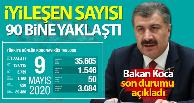 Sağlık Bakanı Fahrettin Koca, verilere ilişkin yaptığı paylaşımda, “Toplam iyileşen sayısı 90 bine yaklaştı. Yoğun bakım desteğine ihtiyaç duyanların sayısındaki azalma devam ediyor. Yapılan test sayısına göre, yeni tanı konan vaka sayısında düşüş devam ediyor. Tedbiri elden bırakmayalım” ifadelerini kullandı.