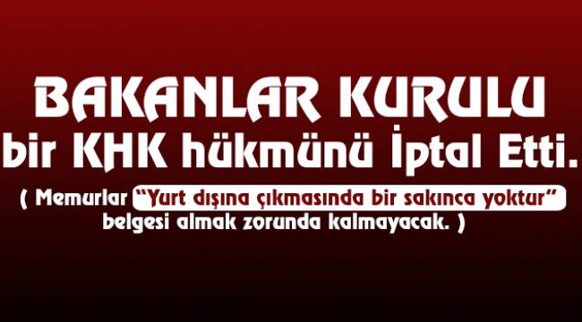 Bakanlar Kurulu bir KHK hükmünü iptal etti.