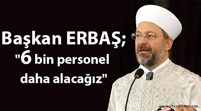 Diyanet İşleri Başkanı Prof.Dr.Ali ERBAŞ;"6 bin personel daha alacağız"dedi.