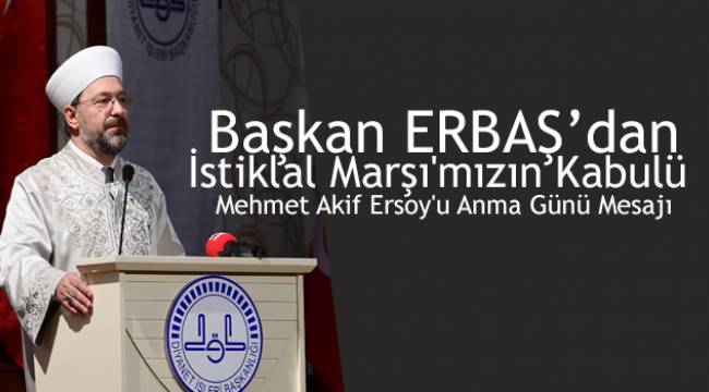Diyanet İşleri Başkanlı Ali ERBAŞ İstiklal Marşının kabukü ve İstiklal şairimiz Mehmet Akif Ersoy'u anma mesajı yayınladı.