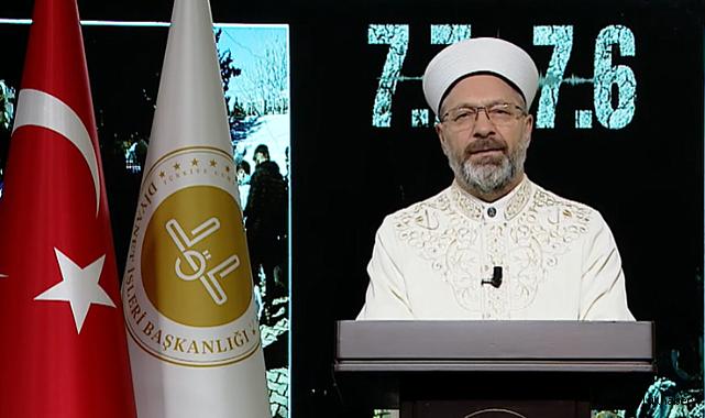 Diyanet İşleri Başkanı Prof. Dr. Ali Erbaş, Kahramanmaraş merkezli depremlerin ardından ilk günden itibaren depremin yaralarını bir an önce sarmak için gayret eden diyanet İşleri Başkanlığı ve Türkiye Diyanet Vakfı (TDV) görevlilerine teşekkürlerini iletti.Diyanet İşleri Başkanı Erbaş, sosyal medya hesaplarından paylaştığı ve ayrıca tüm Diyanet İşleri Başkanlığı ve TDV görevlilerine gönderdiği video mesajında, “İnsanlık tarihinin benzerine şahit olmadığı, 9 saat arayla yaşadığımız iki büyük depremin ilk anlarından itibaren doğusundan batısına, kuzeyinden güneyine ülkemizin tüm illerinden mümin bilinci ve kardeşlik şuuruyla deprem bölgesine koşan kahraman hocalarım!” diye seslendi.Hz. Peygamberin, “Müminler birbirlerini sevmede, birbirlerine merhamet etmede ve birbirlerine şefkat göstermede tek bir beden gibidir. O bedenin bir organı acı çektiği zaman, bedenin diğer organları da uykusuz kalıp acı çekerler.” hadis-i şerifini hatırlatan Başkan Erbaş, “Peygamberimizin varisleri olarak kardeşlerinizin acısını yüreklerinizde hissettiniz. Bu duyarlılık ve sorumlulukla kiminiz arama kurtarma faaliyetlerinde ter döktünüz, kiminiz depremi yaşayan kardeşlerimizi camilerinizde, Kur’an kurslarınızda misafir ederek her türlü ihtiyaçlarını giderip rehberlik etmek için çırpındınız. Kiminiz mezarlıklarda, bazen kendi arkadaşlarınızı da defnetmek zorunda kalarak, cenaze defin işlerinde tarifi imkansız bir sabır ve özveri ile hizmet ettiniz, kiminiz aşçı olarak ikram mekanlarında sıcak yemek pişirip dağıttınız, kiminiz deprem mağduru kardeşlerimize ve çocuklarına manevi destek hizmetinde seferber oldunuz. Daha pek çok faaliyetle yaralı gönüllere merhem olmak için pervane oldunuz.” diye konuştu.“Sizler gibi gönül mimarları hocalarımızla Diyanet İşleri Başkanlığı çatısı altında çalışıyor olduğum için Rabbime şükrediyorum”Bölgeye gidemeyen görevlilerin kendi yerlerinde çalışarak mağdurlara daha fazla yardım göndermek için koşuşturmalarının, deprem mağduru vatandaşlara destek olma gayretlerinin, yüreklerindeki iman, ihlas, muhabbet, vatanseverlik gibi asil duyguların açık bir göstergesi olduğunu ve şüphesiz her türlü takdirin üzerinde olduğunu kaydeden Başkan Erbaş, sözlerini şu ifadelerle tamamladı:“Öyle içten ve gönülden koştunuz ki yardımlaşma ve dayanışma meydanına, sizin gayretinize, çalışmalarınıza, ayakta durabilmek için araba içlerinde iki büklüm kısacık dinlenmeye çalışarak geçirdiğiniz gecelere şahit oldu Kirâmen Kâtibîn melekleri ve kaydetti amel defterlerinize. Sırtlarında Diyanet ve Diyanet Vakfı yazan mavi yelekleriyle iyilik meydanlarında çalışan kadın, erkek her bir hocamız, milletimizin kalbindeki sevgi ve muhabbetini daha da büyütmüştür. Allah her birinizden razı olsun aziz hocalarım.Sizler gibi gönül mimarları hocalarımızla Diyanet İşleri Başkanlığı çatısı altında çalışıyor olduğum için Rabbime şükrediyor, depremde vefat eden hocalarımıza ve tüm kardeşlerimize rahmet, yaralılarımıza şifa niyaz ediyor, her birinizi en kalbî muhabbetlerimle selamlıyorum. Gayretleriniz beratınıza vesile olsun, Berat Geceniz mübarek olsun.”