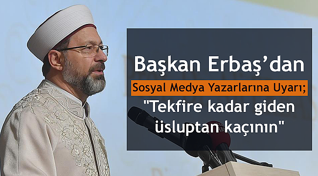 Diyanet İşleri Başkanı Ali Erbaş, "Ekranlarda gazete köşelerinde ve sosyal medyada dini konularda konuşan-yazan herkes, İslam'ın doğru anlaşılmasına, yaşanmasına ve güzel ahlakın yaygınlaşmasına katkı sunmalı" dedi.Diyanet İşler Başkanı Ali Erbaş sosyal medya hesabı twitter üzerinden dini konularda konuşan ve yazanlara uyarılarda bulundu. Erbaş, "Ekranlarda gazete köşelerinde ve sosyal medyada dini konularda konuşan-yazan herkes, İslam'ın doğru anlaşılmasına, yaşanmasına ve güzel ahlakın yaygınlaşmasına katkı sunmalı. İnancımız konusunda yanlış anlamalara yol açacak hatalı söz ve eylemlerden, popülist yaklaşımlardan, kırıcı hatta tekfire kadar giden üsluptan, ilmi müzakere ortamlarında konuşulması gereken ihtilaflı konuları ilgili ilgisiz kişilerin önünde tartışmaktan, hikmeti göz ardı eden ve kafa karışıklığına sebep olan söz ve paylaşımlardan kaçınmalıdır" ifadelerinde bulundu.Erbaş, "Lütfen biraz daha dikkat. Biraz daha hassasiyet" mesajını verdi.