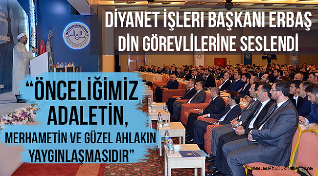 Diyanet İşleri Başkanı Prof. Dr. Ali Erbaş, Antalya’da düzenlenen “Etkili Din Görevlisi, Etkin Din Hizmeti” başlıklı hizmet içi eğitim seminerinde din görevlilerine seslendi.