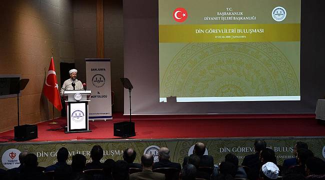 Şanlıurfa’da din görevlileri ile bir araya gelen Diyanet İşleri Başkanı Prof. Dr. Ali Erbaş, İslam’a ve insanlığa hizmet için çalışmanın onurlu bir görev olduğunu kaydetti.