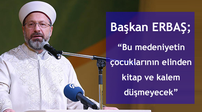 Sadece fakültelerdeki derslerle yetinilmemesi gerektiğini söyleyen Başkan Erbaş, ilmin, çocukları iyi yetiştirerek yayılacağına işaret ederek, “Türkiye Diyanet Vakfı olarak ilim yayma noktasında, 1 yıl içerisinde ‘yurt, burs ve kurs’ metoduyla öğrencilere destek olmayı 4 bin öğrenciden 10 bin öğrenciye çıkardık. İşte bütün vakıflar böyle yapmalı. Sadece yurtta kalsın, yesin, içsin, okula gitsin değil. Çocuklarımızla ilgileneceğiz. Kurslarını aldıracağız, burslarını da vereceğiz” diye konuştu.Konuşmanın sonunda, İlim Yayma Vakfı Mütevelli Heyeti Başkan Vekili Bilal Erdoğan ve VEFADER Başkanı Murat Mücahit Yentür, Başkan Erbaş'a vakfa kayıt olduğu evrakın içinde yer aldığı bir tablo hediye etti.