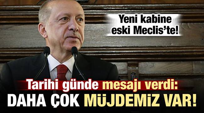 Erdoğan'ın açıklamalarından satır başları:Duyguluyum zira bu çatının altında böyle bir başlangıç yapmak çok şeyler hatırlatıyor bize.Tarihi dönüşümün ilk adımını bu kutlu çatının altında atıyoruz. Cuma saati, bugünün bereketinden istifade amacıyla seçilmişti. Biz de aynı amaçla burada toplandık. Son yıllarda sınırlarımız içinde ve dışında yürüttüğümüz terörle mücadele operasyonlarımız ile 15 Temmuz'da şehit olan kardeşlerimiz için rahmet diliyorum. Gazilerimize sıhhat diliyorum. 15 Temmuz geldi çattı. 81 vilayetimizde anma törenlerimizi yapacağız. 1. Meclis gazi bir meclisti, şu anki Meclisimiz de gazilikle şereflenmiştir.Tüm milletvekillerimizi saygıyla anıyoruz. Yeni yönetim sistemimizin merkezi olan Cumhurbaşkanlığı Külliyesi de gazi bir mekandır. Şahadet ve gazilikle girdiğimiz Anadolu'da aynı inanç, azim ve kararlılıkla savunuyoruz. Ezanları susturmamak, bayrağı indirmemek için alın terimizle gerektiğinde canımızla mücadelemizi sürdürüyoruz. Meclisimiz en iyi yasaları çıkarak, kabinemiz en iyi kararları alacak, yargımız adaletin tecellisi için çalışacak, milletimizin her bir kesimi kendi üzerine düşeni en güzel şekilde yerine getirecek, böylece Türkiyemizi muasır medeniyetler seviyesinin üzerine çıkaracağız. Geleceğimize güvenle bakabileceğimiz bir Türkiye inşa edene kadar dur durak bilmeden çalışacağız. 'ÇILGINA DÖNENLER VAR'16 yılda Türkiye'yi 3,5 kat büyüttük. Kendi siyasi ve ekonomik hırslarını toplumun önüne koyan küçük bir güruhu saymazsanız, milletimizin istediği de budur. Biz milletimizle yola çıkmış, yine nice engeli onlarla aşan bir kadroyuz. Bizim davamız, milletimizin davasıdır, bizim mücadelemiz milletimizin mücadelesidir. Bizim öfkemiz, milletimizin öfkesidir. Bizim yanımızda milletimiz var peki karşımızda kim var? Karşımızda terör örgütleri var, destekçileri var. Ülkemizin büyümesinden rahatsız olanlar var. Yatırımları hazmedemeyen sinsi rakiplerimiz var. Karşımızda maziden atiye kurduğumu köprüyle milletimizin özgüvenin artmasından çılgına dönenler var. Bugüne kadar dediğimiz gibi bize Allah yeter, bize milletimiz yeter.Allah'ın yardımı milletimizin desteği olduğu müddetçe her türlü tehdidin üstesinden geliriz. 'DAHA ÇOK MÜJDELERİMİZ VAR'Yeni bir yolun başlangıcında, Mamur kılınacak şehirlerimiz, işlenecek bereketli topraklarımız, yetiştirilecek yavrularımız. Yapılacak yollarımız, kurulacak fabrikalarımız, tarlasında hasadını kaldırarak devletimizi kalkındıran çiftçilerimize daha çok müjdelerimiz var. Daha güçlü hale getirilecek eğitim öğretim faaliyetlerimiz var. Ayrımcılıkla mücadele ederek bugünlere gelen kadınlarımıza verecek yeni desteklerimiz var. Sanayicimize, girişimcimize, ihracatçılarımıza verecek katkılarımız var. İşçilerimizin hayatını kolaylaştırmak için atılacak çok adımlarımız var. Bu dönemin sorumluluğu çok önemlidir. Hem inşa, hem ihya edeceğiz. 15 Temmuz gecesi yaşadıklarımız agibi, Allah'tan tıpkı Akif gibi bir daha İstiklal Marşı yazdırmamasını istemiştik, bundan sonra inşallah sadece zafer marşları yazacağız.Cumhurbaşkanlığı kabinemizin bu ilk toplantısı vesilesiyle, eskimez Meclis binamizdaki toplatımızın hayırlara vesile olmasını diliyorum.