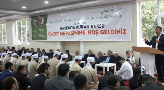 Batman İl Müftülüğüne bağlı Demiryolu (Tılmerç) mahallesinde bulunan Haseniye Yatılı Erkek Kur'an Kursu'nda ilmi tedrisatı tamamlayan 15 talebeye düzenlenen törenle icazetleri verildi.Törene; Batman Üniversitesi Rektörü Prof. Dr. Aydın DURMUŞ, İl Müftüsü Turgut ERHAN, Suriye Emevi Camii müezzinlerinden Hafız Şeyh Munir Abdulcevad, STK temsilcileri, kanaat önderleri ile vatandaşlar katıldı. Hafız Şeyh Munir Abdulcevad'in Kur'an-ı Kerim tilavetiyle başlayan tören, ilahi ve kasidelerin okunmasıyla devam etti.Batman İl Müftüsü Turgut ERHAN yaptığı konuşmada, medreselerin önemine dikkat çekti.Çocukları İslam terbiyesiyle büyütmenin anne ve babaların görevi olduğuna işaret eden İl Müftüsü ERHAN, "Bilge kral Aliya İzzetbegoviç diyor ki, 'siz göklerin öğrencisi olmazsanız yeryüzünün öğretmenleri olamazsınız.' Hiç şüphesiz bütün devletlerin, milletlerin hedefi geleceğe iyi nesiller yetiştirmektir. Onun için Kur'an'ın tabiriyle, Resulullah'ın (sav) ifadesiyle; evlatlarımız, çocuklarımız, geleceğimiz, ümidimiz aile içerisine Allah tarafından saçılmış birer inci, dünya hayatının birer süsü, Allah'ın lütfu ve ihsanı, anne ve babaların göz nuru, cennet çiçeği ve gönül meyvesidirler." dedi.Hiçbir anne babanın evladına güzel edep ve terbiyeden daha üstün hiçbir şey vermediğini ve veremeyeceğini vurgulayan ERHAN, "İşte o anne ve babaların en önemli görevi güzel ahlaklı bireyler topluma yetiştirmektir. Evlatların boyları büyürken bakış açılarını da büyütmek, dış alemdeki güzellikleri gösterirken onlara iç alemlerindeki güzellikleri ve özellikleri de göstermek biz öğretici ve eğiticilerin en önemli görev ve vazifesidir. Hiç şüphesiz belki de eğitimin ilk halkası şefkat ve merhamettir. Evlatlarımızı eğitirken onlara 'küçük yaşta ne ekersek büyüyünce onu biçeceğiz' düşüncesiyle bir şeyler vermek gerekir." diye konuştu.Konuşmasının devamında ERHAN, şunları söyledi: "İçinde bulunduğumuz çağda bağnazlığın, cehaletin, zulmün, savaşın, nefretin, öfkenin bölüp parçalanmanın girdaplarından evlatlarımızı çekip alıp; sevginin, saygının, yardımlaşmanın, alçak gönüllülüğün, birliğin ve beraberliğin engin sularına bırakmak birinci görev ve vazifemizdir."Medreselerin yaklaşık bin küsur yıl İslam medeniyetinin temellerini atan marif kurumlarının adı olduğunu belirten Erhan, "Müslüman toplumlar medreseye yeniden diriltici bir ruh üfleyerek bir medeniyet hamlesini buradan başlatmaları gerekir." ifadelerini kullandı.İl Müftüsünün konuşmasının ardından program, Kur'an Kursu Müderrisi Molla Abdurrahman SÜYÜR'ün icazet metnini okuması ile devam etti.İlahiler ve salavatlar eşliğinde devam eden program, okunan icazet metninin ardından 15 talebeye icazet belgeleri takdim edildi.