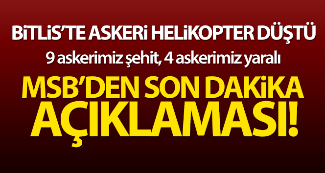 Söz konusu elim kaza neticesinde; helikopterde bulunan kahraman silah arkadaşlarımızdan 9'unun şehit olduğu, 4 kahraman silah arkadaşımızın ise yaralandığı belirlenmiştir. Yaralı personelimizin hastaneye sevk edilmelerine yönelik çalışmalar devam etmektedir. Bizleri derin bir acı ve üzüntüye boğan bu elim olayda şehit olan kahraman silah arkadaşlarımıza Allah'tan rahmet, değerli ailelerine, yakınlarına, Türk Silahlı Kuvvetleri ile Asil milletimize başsağlığı ve sabır, yaralı personelimize acil şifalar diliyoruz.'' denildi.