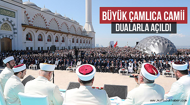 Temeli 6 yıl önce atılan, 63 bin kişinin aynı anda ibadet edebileceği, Türkiye'nin en büyük camisi Büyük Çamlıca Camii Cumhurbaşkanı Recep Tayyip Erdoğan ve yabancı devlet adamlarının katılımıyla resmi olarak ibadete açıldı.Türk bayraklarıyla donatılan caminin açılış töreni öncesi, sabah saatlerinden itibaren İstanbul Müftülüğü’nün görevlendirdiği hocalar ile Filistin ve Mısır'dan gelen hafızlar, Kur'an-ı Kerim ve ilahiler okudu.Yerli ve yabancı birçok davetlinin katıldığı ve vatandaşlar yoğun ilgi gösterdiği açılış töreninde bir konuşma yapan Cumhurbaşkanı Recep Tayyip Erdoğan, resmi açılışı yapılan caminin İstanbul, ülke ve İslam alemi için hayırlara vesile olması temennisinde bulundu.Cumhurbaşkanı Erdoğan, Büyük Çamlıca Camii’nin engelli dostu olarak inşa edilen külliye içerisinde geleneksel el sanatlarının icrası için de 2 bin 500 metrekare alana sahip atölyeler bulunduğunu belirterek, inşaatına 19 Mart 2013'te başlanan camiyi yoğun bir çalışmanın ardından hizmete açtıklarını söyledi.Türkiye'nin en büyük camisi vasfını taşıyan eserin İstanbul'un her noktasından da rahatça görülebildiğini aktaran Erdoğan, caminin mimarisinin tarihe, medeniyete ve inanca ait birçok sembolü de bünyesinde barındırdığını kaydetti.Cumhurbaşkanı Erdoğan, caminin imanın şartını temsilen 6 minaresinin bulunduğunu, bunlardan üç şerefeli 4 minaresinin Malazgirt Zaferi'ne ithafen 107,1 metre yüksekliğinde yapıldığını dile getirerek, şunları kaydetti:"Caminin 72 metre yükseklikteki ana kubbesi, İstanbul'da yaşayan 72 milleti, 34 metre çapındaki kubbesiyse İstanbul'un plaka numarasını ifade ediyor. Kubbenin iç yüzeyine 16 Türk devletini temsilen Allah'ın isimlerinden 16'sı, Haşr Suresi'nin son iki ayetinden istifade edilerek yazılmıştır. Ana kubbenin üzerine 3 metre 12 santimetre genişliğinde ve 7 metre 77 santimetre yüksekliğinde ağırlığı 4,5 tonu bulan bir alem yerleştirildi. Nanoteknolojiyle renklendirilen ve 3 parçadan oluşan alem, kendi alanında dünyanın en büyüğüdür. Bunların yanında camimizin kubbesine, kapısına, minberine, mihrabına işlenmiş daha pek çok özelliği vardır. İnşallah tüm bu vasıflarıyla Büyük Çamlıca Camisi, medeniyet mirasımızı daha ileriye taşıyacak mimarların, yeni ustaların yetişmesine de vesile olacaktır""Nerede bir kubbe, bir minare varsa orası bir Müslüman yurdudur"Camilerin Müslümanların cem olduğu, yani birleştiği, bütünleştiği, aynı safta kalplerini birbirine kenetlediği mekanlar olduğunu aktaran Erdoğan, şöyle devam etti:"Adına ümmet dediğimiz sınıf, sınır, mesafe, renk, dil ve ırk tanımayan evrensel kardeşliğimiz evvela camilerimizde vücut bulur. Müminler tüm renkleriyle, bütün farklılıklarıyla ümmet olduklarının, kardeş olduklarının bilincine öncelikle camilerde varır. Bundan dolayı camiler sadece bir ibadethane değil, aynı zamanda günde 5 defa uhuvvetimizin, muhabbetimizin mayalandığı yerlerdir. Camiler ebedi ve ezeli kardeşliğimizin remzi, birlik ve beraberliğimizin çimentosudur. Aynı zamanda camiler İslam'ın tevhit çağrısının tüm insanlığa verdiği barış mesajlarının yankılandığı mübarek mekanlardır. Bizim ibadet mekanlarımız yükseldikleri beldelere kattıkları mana sebebiyle büyük ve ihtişamlı olarak inşa edilmiştir. Nerede bir kubbe, bir minare varsa, nerede ezanlarımız gökyüzüne karışıyorsa hiç şüphesiz orası bir Müslüman yurdudur."“Nerede bir kubbe, bir minare varsa orası bir Müslüman yurdudur”Camilerin Müslümanların cem olduğu, yani birleştiği, bütünleştiği, aynı safta kalplerini birbirine kenetlediği mekanlar olduğunu aktaran Erdoğan, şöyle devam etti:“Adına ümmet dediğimiz sınıf, sınır, mesafe, renk, dil ve ırk tanımayan evrensel kardeşliğimiz evvela camilerimizde vücut bulur. Müminler tüm renkleriyle, bütün farklılıklarıyla ümmet olduklarının, kardeş olduklarının bilincine öncelikle camilerde varır. Bundan dolayı camiler sadece bir ibadethane değil, aynı zamanda günde 5 defa uhuvvetimizin, muhabbetimizin mayalandığı yerlerdir. Camiler ebedi ve ezeli kardeşliğimizin remzi, birlik ve beraberliğimizin çimentosudur. Aynı zamanda camiler İslam'ın tevhit çağrısının tüm insanlığa verdiği barış mesajlarının yankılandığı mübarek mekanlardır. Bizim ibadet mekanlarımız yükseldikleri beldelere kattıkları mana sebebiyle büyük ve ihtişamlı olarak inşa edilmiştir. Nerede bir kubbe, bir minare varsa, nerede ezanlarımız gökyüzüne karışıyorsa hiç şüphesiz orası bir Müslüman yurdudur.”“İnsanları katletmenin, ibadet mekanlarını bombalamanın adı cihat değil, terördür”Erdoğan, kimsenin, Kur'an'ın çizdiği sınırları keyfine göre değiştiremeyeceğini, helali haram kılamayacağını vurgulayarak, şunları söyledi:“Allah Resulünün, fakihlerin ve ehli sünnet büyüklerinin cevaz vermediği bir konuda hiç kimse kendi anlayışına göre kural koyamaz. Hele hele 'cihat yapıyorum' diyerek hiç kimse ibadethanelere saldıramaz. İnsanları katletmenin, ibadet mekanlarını bombalamanın adı cihat değil, terördür, vahşettir, cinayettir. Türkiye olarak bu cinayet şebekeleriyle hem ülkemiz içinde hem de sınırlarımız dışında yoğun bir mücadele yürütüyoruz. Ülkemizi ve bölgemizi DEAŞ, El Kaide, FETÖ ve PKK gibi örgütlerin etrafında toplanan sapkınlardan temizlemekte kararlıyız. Aynı şekilde Avrupa'da camilerimize saldıran, Müslümanları hedef alan Neonazi terörüyle de mücadelemizi sürdüreceğiz.Her ne kadar kimi Batılı güçler çifte standart uygulasa da biz bu konuda tutarlı ve kararlı olacağız. Geleceğimizin, bu insanlık düşmanları tarafından esir alınmasına asla müsaade etmeyeceğiz. Bu