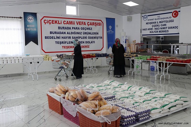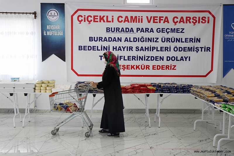 Nevşehir Çiçekli Cami İmam Hatibi Ahmet Aydemir, Korona virüs ile mücadele kapsamında camilerin kapatılmasının ardından cami içerisinde bulunan aşevi kısmını vefa çarşısına çevirdi.