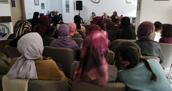 Çorum Diyanet Gençlik Merkezi'nde gençlere yönelik faaliyetler aralıksız sürüyor. Bu kapsamda Hitit Kız Öğrenci Yurdu Manevi Danışmanı Semra Sevinç tarafından verilen Kur’an-ı Kerim derslerinde Kur’an okumayı öğrenen öğrenciler için program düzenlendi. Gençlerin Kur’an’ı Kerim okuduğu programda gençlerin başarısı için dua edildi. Programda öğrencilere Kur'an-ı Kerim meali hediye edildi. Öte yandan Hitit ve Hayrettin Karaman Gençlik ve Spor Bakanlığı Kız öğrenci yurtlarında kalan öğrenciler Diyanet Gençlik Merkezinde misafir edildi. Manevi danışman Semra Sevinç öncülüğündeki programda, dini musiki dinletisi yapıldı. Süheybi Rumi Kız Kur’an Kursu öğrencileri tarafından hazırlanan Çorum lezzetlerinin ikram edildiği program, dualarla son buldu.