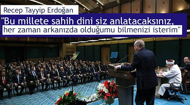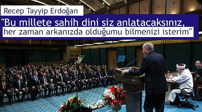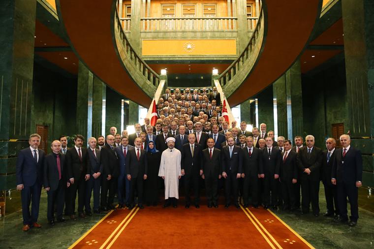 Cumhurbaşkanı Recep Tayyip Erdoğan, il müftülerini Cumhurbaşkanlığı Külliyesinde kabul etti.Kabulde Başbakan Yardımcısı Bekir Bozdağ, Diyanet İşleri Başkanı Prof. Dr. Ali Erbaş, Din İşleri Yüksek Kurulu Başkanı Dr. Ekrem Keleş, Diyanet İşleri Başkan Yardımcıları da hazır bulundu.Tüm il Müftülerine "Bu millete sahih dini siz anlatacaksınız her zaman arkanızda olduğumu bilmenizi isterim" dedi.