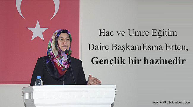 Hac ve Umre Eğitim Daire Başkanı Esma Erten, ömrün en değerli kısmının gençlik dönemi olduğunu belirterek bu dönemin en iyi şekilde değerlendirilmesi gerektiğini ifade etti.
