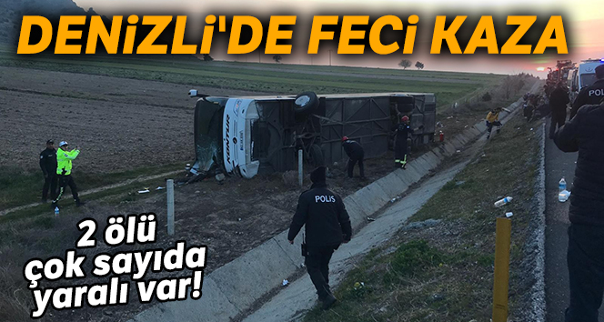 Denizli’ de meydana gelen trafik kazasında şarampole devrilen otobüste çok sayıda kişi yaralanırken, ilk belirlemelere göre 2 kişi hayatını kaybetti, 20'ye yakın da yaralı var.