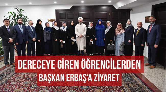 Dereceye giren öğrencilerden Başkan Erbaş'a ziyaret