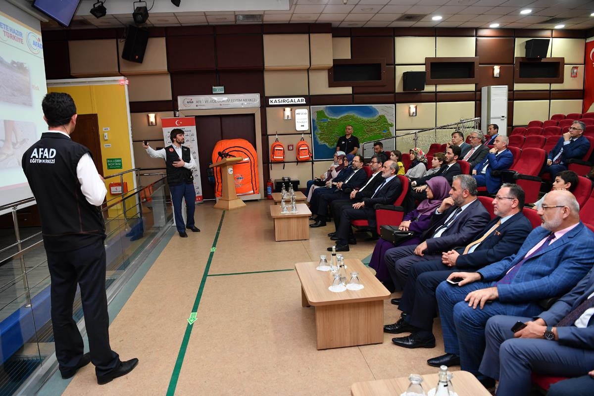 Başkan Erbaş, Kur'an-ı Kerim'deki bir ayetten örnek vererek, Allah'ın kullarına kendilerini tehlikeye atmamaları uyarısında bulunduğuna işaret ederek, şunları söyledi:"Nedir tehlike, tedbir almamaktır. Tedbirler ne kadar çok olursa, tedbir alma kapasitesi ne kadar yüksek olursa, olan afetlerde uğradığımız zararlar o kadar az olur. Bununla ilgili de biz vatandaşlarımızı bilgilendiriyoruz ve daha da iyi bilgilendirmek zorundayız. Gerek vaazlarımızda, gerek hutbelerimizde milyonlarca insanımızla karşı karşıya geliyoruz. Vaaz ve irşat yoluyla, bu tehlikeyi hem milletimizden, hem vatanımızdan uzaklaştırma ve tedbir alma noktasında üzerimize düşen görevi en iyisini yapmayı AFAD Başkanlığı ile birlikte gerçekleştireceğiz."Programa, Din İşleri Yüksek Kurulu Başkanı Dr. Ekrem Keleş, Diyanet İşleri Başkan Yardımcıları Osman Tıraşçı, Prof. Dr. Ramazan Muslu, Burhan İşliyen ve Başkanlık üst düzey yöneticileri katıldı.