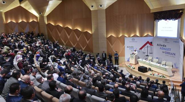 “Kur'an bizi her daim adalete, insafa, hakkaniyete, dengeye davet etmektedir”Allah, hayatın her anında herkese karşı adil olmamızı emretmekte, Kur'an bizi her daim adalete, insafa, hakkaniyete, dengeye davet etmektedir. Nitekim bütün camilerimizde her cuma hutbesinin sonunda iyilik ve adaleti emreden "Şüphesiz Allah, adaleti, iyilik yapmayı, yakınlara yardım etmeyi emreder; hayasızlığı, fenalık ve azgınlığı da yasaklar. O, düşünüp tutasınız diye size öğüt veriyor." ayet-i kerimesi mealiyle beraber okunuyor. İslam'da tevhidden sonra en önemli vurgulardan biri olan adalet, dengeli ve ölçülü olmak, ifrat ve tefritten uzak kalmak, haddi aşmamak, itidal üzere davranmak, herkese hak ettiğini vermek demektir. Bu bağlamda ailede adalet; karşılıklı sevgi ve saygının gözetilmesi, onurun korunması, emeğin takdir edilmesi, haklar ve sorumluluklarda hakkaniyetin ve insaflı bir yolun benimsenmesi demektir. Hz. Muhammed Veda Hutbesi'nde 'Bilin ki, sizin hanımlarınız üzerinde hakkınız olduğu gibi, hanımlarınızın da sizin üzerinizde hakları vardır’ diye buyurmuştur.“İslam’ın ailede en ideal yaklaşım olarak gösterdiği hedef ihsan ahlakıdır”İslam’ın ailede en ideal yaklaşım olarak gösterdiği hedef ihsan ahlakıdır. İhsan, hiçbir karşılık beklemeden ve asla minnet altında bırakan bir tutum takınmadan yapılan iyiliktir. Herkesin diğerini hoşnut etme gayesini davranışlarının merkezi yapmasıdır. Bu şekliyle ihsan, aile bireylerinin hep beraber birbirlerine karşı yaklaşımında temel ahlaka dönüştüğünde aile gerçek manada ve bütün boyutlarıyla huzur yuvası haline gelecektir. Bugün aileyi oluşturan bireyler olarak kadın ve erkek, birbirlerini destekleyen ve tamamlayan bir yaklaşımla beraberce daha huzurlu bir hayatı inşa edeceklerdir. Bunun için de hepimize düşen en önemli görev ailede ve hayatın her alanında adalet ve ihsan ahlakının güçlenmesi ve yaygınlaşması için çalışmaktır.Programa, Diyanet İşleri Başkan Yardımcısı Prof. Dr. Huriye Martı, İstanbul Müftüsü Prof. Dr. Hasan Kamil Yılmaz, Marmara Üniversitesi İlahiyat Fakültesi Dekanı Prof. Dr. Ali Köse, Din Hizmetleri Genel Müdürü Bünyamin Albayrak, akademisyenler, öğrenciler ve vatandaşlar katıldı