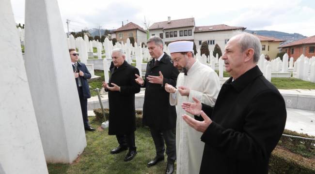 Diyanet İşleri Başkanı Prof. Dr. Ali Erbaş, Başbakan Binali Yıldırım ve beraberindeki heyetle Kovaçi Şehitliği'ni ve Bosna Hersek'in ilk Cumhurbaşkanı Aliya İzzetbegoviç'in kabrini ziyaret etti.Başbakan Yıldırım, Bosna Hersek Bakanlar Konseyi Başkanı Denis Zvizdic ile Kovaçi Şehitliği'ne çiçek bıraktı. Ardından Başbakan Yıldırım, heyetle yürüyerek şehitlik alanındaki Bosna Hersek'in ilk Cumhurbaşkanı İzzetbegoviç'in kabrine geçti.Kur'an-ı Kerim okunmasının ardından diyanet İşleri Başkanı Prof. Dr. Ali Erbaş Şehitler için dua etti. Diyanet İşleri Başkanı Erbaş, duasında "Müslümanlara birlik ve beraberlik ver, her türlü tefrika ve fitneden uzak eyle Allahım. Vatanlarımıza, memleketlerimize göz diken düşmanlara fırsat verme. Allahım, vatanlarımız için bayraklarımız için şehit olan bütün şehitlerimize rahmet eyle" niyazında bulundu.Ziyarette, Başbakan Yardımcısı Recep Akdağ, Ekonomi Bakanı Nihat Zeybekci, Ulaştırma, Denizcilik ve Haberleşme Bakanı Ahmet Arslan, Bosna Hersek Reis-ul Uleması Hüseyin Efendi Kavazoviç ile diğer yetkililer de yer aldı.
