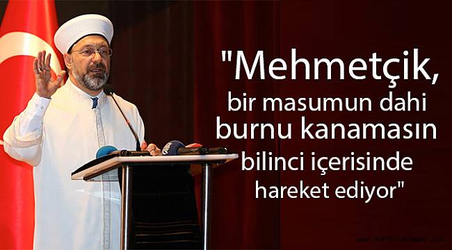 Diyanet İşleri Başkanı Prof. Dr. Ali Erbaş, Sakarya'nın Adapazarı ilçesindeki Orhan Gazi Kültür Merkezi'nde Sakarya 15 Temmuz Milli İrade Derneği'nin 1. Olağan Kongresi'ne katıldı. diyanet İşleri Başkanı Erbaş, burada yaptığı konuşmada, İslamiyet için en büyük tehlikenin dini istismar olduğunu belirtti.Din istismarına ve yanlış dini algılara karşı Kur'an ve sünnet merkezli dinin doğru anlaşılmasının sağlanması gerektiğini vurgulayan Başkan Erbaş, "Milletimizin birlik ve beraberliği, huzur ve kardeşliği, dini ve milli meselelerde gerekli beraberliği, her türlü fedakarlığın yapılması ve devletimizin bekası konusunda azami hassasiyet göstermeliyiz. Bu uğurda yapacağımız hiçbir çalışmadan geri durmayacağımız gibi din hizmetlerimizi kesintisiz olarak sürdürmeye devam edeceğiz" diye konuştu. Dinin, bu milletin mayası olduğuna işaret eden Başkan Erbaş, milletin en zor zamanları inancı ve imanıyla aştığını aktardı. Doğru dini bilgiyi gençlere öğretmenin önemini dile getiren Başkan Erbaş, "Eğer bu noktada bizler vazifemizi yapmazsak işte bugün terör örgütü haline dönüştürülen ve dini birtakım oluşumlar olarak tanıtılan gruplarla karşı karşıya kalırız. DEAŞ, Boko Haram, Eş-Şebab, FETÖ nasıl ortaya çıktı. Yanlış birtakım dini algılarla ortaya çıktı" ifadelerini kullandı. "Mehmetçik, bir masumun dahi burnu kanamasın bilinci içerisinde hareket ediyor"Başkan Erbaş, Zeytin Dalı Harekatı'na değinerek, Mehmetçiğin Afrin'de masumlara zarar gelmemesi için yavaş ilerlediğini kaydetti. Irak ve Suriye'yi bombalayanların insanları katlettiğini anlatan Başkan Erbaş, "Bizim Müslüman askerimiz yaptığı savaşı İslam ahlakına göre yapıyor. Onun için Afrin'de yavaş ilerliyor. Bir masum insanın dahi burnu kanamasın bilinci içerisinde hareket ediyor ki bu zaten İslam'ın emridir. Müslüman askerin yapması gereken de budur. Bizim askerimiz bunu yapıyor elhamdülillah. Bizim fetihlerimizin tamamı zulmü önlemek için yapılmıştır. Bizim askerimizin kurşunu şu anda mazlumu korumak için zalime karşı atılıyor. Askerimiz bunun için çatışıyor. Çünkü orada terör örgütleri var, sürekli zulmediyorlar. Onların umurunda mı masum insanlar hayatını kaybetmiş" şeklinde konuştu. Mezhepçilik tefrikasının yaygınlaştırılmaya çalışıldığına vurgu yapan Başkan Erbaş, "İslam aleminde mezhepçilik savaşları başladı adeta sadece çatışmalar değil savaşa dönüştü. Sünni-Şii savaşı çıkarmaya çalışıyorlar" değerlendirmesinde bulundu.