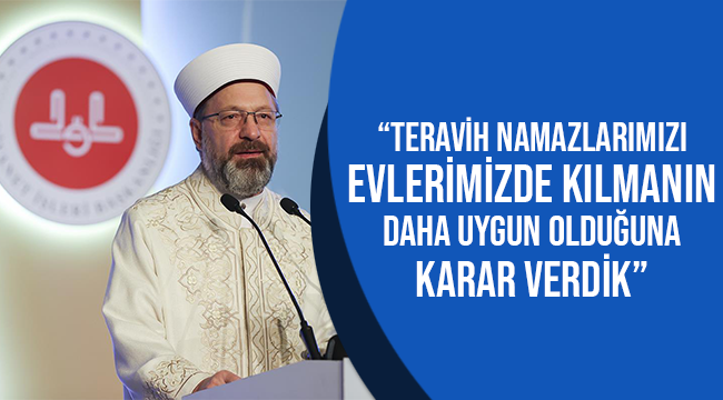Diyanet İşleri Başkanı Prof. Dr. Ali Erbaş“Teravih namazlarımızı evlerimizde kılmanın daha uygun olduğuna karar verdik”dedi.
