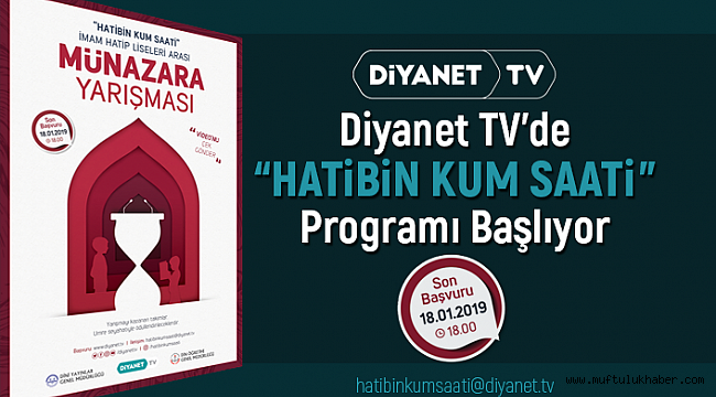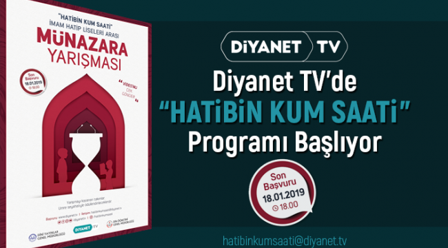 Yarışma programı Diyanet TV İç Yapımlar projesidir.Oylamaya seyirciler de katılacak ve Jüri üyelerinin yorum ve puanlamasıyla yarışmayı kazanan okullar belirlenecektir.Okullar ön eleme için “sosyal medya zararlıdır” konusuna hazırlanacaklar ve 3 asil 1 yedek öğrencinin her biri 2 dakikayı aşmadan ve toplamda 6 dakikayı geçmeyen bir video kaydında yukarıda yazılı konuyu yarışma esnasında anlatmayı düşündükleri gibi savunacaklar ve bu videoyu hatibinkumsaati@diyanet.tv adresine; Okul Adı-Okul Müdürü Adı-Danışman Öğretmen Adı- Münazaracı Öğrenci adları ve Okul iletişim bilgileriyle beraber göndereceklerdir.Ön eleme için videolar 18 Ocak 2019 saat 18.00’e kadar belirtilen adrese hatibinkumsaati@diyanet.tv mail (WeTransfer) yoluyla gönderilecektir.Ön eleme için hazırlanıp gönderilecek video kaydında, öğrencilerin simalarının seçilir, seslerinin anlaşılır, yankı yapmayan ortamda ve yüksek çözünürlükte kayda alınması, ayrıca telefondan kayıt yapılacaksa, telefonun yan tutulması gerekmektedir.Ön elemeyi geçen okullara yarışma takvimi-çekim günü ve hazırlanacakları konular, çalışma süreleri düşünülerek bildirilecektir. Rakip okul bilgisi verilmeyecektir. Ön elemeyi geçemeyen okullara bildirim yapılmayacaktır.Karma eğitim veren İmam-hatip Liseleri birbirinden ayrı Kız ve Erkek takımı olarak katılabileceklerdir.Yarışmaya Lise 1, 2, 3 ve 4. sınıf öğrencileri katılabileceklerdir.Erkek İmam Hatip Liseleri erkek öğrenci, Kız İmam Hatip Liseleri, kız öğrenci takımları ile katılabileceklerdir.Yarışmaya 3 asil 1 yedek öğrenci ve kendilerine danışmanlık ile, seyahatlerinde eşlik edecek 1 öğretmenleriyle katılacaklardır.Tez ve anti tezlerinizde siyasi örnekler kabul edilmeyecektir.Tez savunma ve çürütmelerinde, ayet ve hadis kaynak gösterilmeyecektir.Yarışmacılar; rakiplerini yeren, rencide eden, üstü kapalı hakaret eden ifade ve üsluptan kaçınacaklardır.Yarışma kurallarına riayetsizliğe hemen müdahale edilecek ve sunumun tekrar yapılması istenecek ve puan kırılacaktır. Kurallara uymayan takımlar hükmen mağlup sayılacaklardır.Yarışmacı öğrencilerin ve danışmanlarının, ulaşım-şehir içi transfer-konaklama-yemek gibi tüm masrafları ile yarışmada giyecekleri baskılı üst giysileri diyanet tv tarafından karşılanacak ve Ankara’da bulundukları süre boyunca kendilerine koordinatör verilecektir.Diyanet Haber