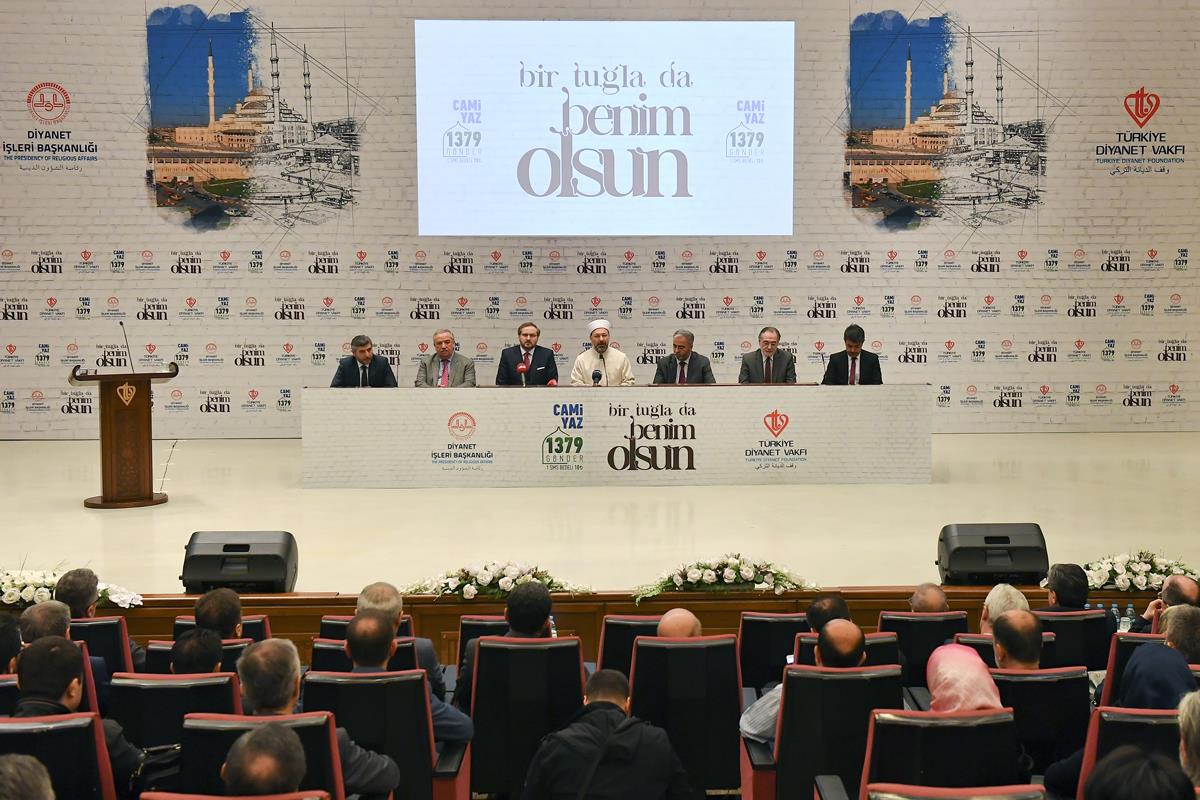Diyanet İşleri Başkanı Prof. Dr. Ali Erbaş, diyanet İşleri Başkanlığı ve Türkiye Diyanet Vakfı’nın (TDV) Türkiye’nin yanı sıra dünyanın pek çok yerinde inşası devam eden camilerin tamamlanması ve yeni projelerin hayata geçirilmesi için düzenlediği “Bir Tuğlada Benim Olsun” yardım kampanyasının tanıtım toplantısına katıldı.TDV Kocatepe Konferans Salonu’nda gerçekleştirilen toplantıda konuşan Diyanet İşleri Başkanı Erbaş, “Türkiye Diyanet Vakfı olarak, inşaatı devam eden yurt içi ve yurt dışı cami inşaatları için milletimizin yardımlarına başvuruyoruz. Elbette aziz milletimizin bugüne kadar olduğu gibi kıyamete değin camilere destek olacağına can-ı gönülden inanıyoruz. ‘Bu bağlamda Bir Tuğla da Benim Olsun’ kampanyasını başlatmış bulunuyoruz” dedi.Başkan Erbaş, camilerin fonksiyonları ve temsil ettiği değerler açısından İslam toplumunun ve düşüncesinin merkezi olduğunu söyledi.“Camiler, hayatın bütün alanlarına yönelik değerlerin, ruh köklerinin birleştiği mekânlardır”İslam’da hayatın, şehrin ve medeniyetin merkezinde cami olduğunun altını çizen Başkan Erbaş, “Cami bireyin inanç dünyasından toplumsal ilişkilere, kulluk ve sorumluluk bilincinin oluşmasından hukukun inşasına, eğitimden sanata, aileden çevreyle ilişkilere, hayatın bütün alanlarına yönelik değerlerin ruh köklerinin birleştiği mekândır” dedi.Peygamber Efendimizin hicret yolundayken bizzat kendisinin çalışarak Kuba’da bir mescit inşa ettiğine işaret eden Başkan Erbaş, “Medine’ye hicretle birlikte risalet mesajının mektebi, İslam medeniyetinin tefekkür ve tedebbür merkezi Mescid-i Nebevinin temelini atmıştır. İslam’ın en güzide topluluğu olan sahabe nesli bu mescitte yetişmiştir” diye konuştu.“TDV, yeryüzünde ezan sesine hasret kimse kalmasın şuuruyla camiler inşa etmektedir”Camileri inşa edilmesinin, camilere sahip çıkılmasının, camilerin onarılmasının Kur’an-ı Kerim ve hadis-i şeriflerde Müslümanların bir görevi olduğunun buyurulduğunu hatırlatan Başkan Erbaş “Aynı zamanda bu ve benzeri ayet-i kerime ve hadis-i şerifler, bizlere, camilerin temsil ettiği, tevhit, kulluk, özgürlük, kardeşlik, eşitlik, beraberlik, yardımlaşma, dayanışma gibi değerleri koruma, yaşama, onarma ve yaşatma sorumluluğunu da yüklemektedir” şeklinde konuştu.Başkan Erbaş, Türkiye Diyanet Vakfının kurulduğu 1975 yılından itibaren iyiliği her yere taşımak gayesi ile çalıştığını belirterek, “Türkiye Diyanet Vakfımız, kadirşinas milletimizin desteğiyle Balkanlardan Afrika’ya, Kafkaslardan Güney Amerika’ya İngiltere’den Haiti’ye, Filistin’den Belarus’a kadar yeryüzünün her yerinde, ezan sesine hasret kimse kalmasın şuuru ve gayesiyle camiler inşa etmektedir” ifadelerini kullandı.Kampanyaya katılarak camilerimizin inşasına katkı sunan herkese teşekkür eden Başkan Erbaş, kampanyaya katılmak isteyenlerin "CAMİ" yazarak 1379'a mesaj göndermeleri halinde 10 lira yardımda bulunabileceklerini kaydetti.