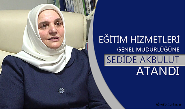 Diyanet İşleri Başkanlığı Eğitim Hizmetleri Genel Müdürlüğüne Yaygın Din Eğitimi Daire Başkanı Sedide AKBULUT atandı.