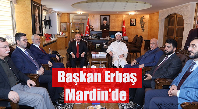 Diyanet İşleri Başkanı Prof. Dr. Ali Erbaş, bir dizi programa katılmak amacıyla Mardin’e geldi. Havalimanında Vali ve Büyükşehir Belediyesi Başkan Vekili Mustafa Yaman ile bölge illerindeki üniversitelerin rektörleri tarafından karşılanan Erbaş, ilk olarak valiliği ziyaret etti. Ziyarette konuşan Vali Yaman, bölgenin kültürel bir zenginlik içinde olduğunu belirterek, “İlimizde kültürel zenginliklerimiz ile birlikte yaşıyoruz.Cumhurbaşkanlığımızın önderliğinde ilimizde çok güzel yatırımlara imza attık. Son yıllarda ilimizdeki huzurla birlikte bölgeye gelen misafir sayımızda artışlar var. Bölgedeki insanlarımızın yüzü gülüyor. Bu da bizler için sevindirici” diye konuştu.Prof. Dr. Erbaş ise, 20 il buluşmasını tamamladıklarını ve bugün de Mardin’de bir araya geldiklerini kaydederek, “Amacımız Diyanet İşleri Başkanlığı olarak merkezden mezraya tüm insanlarımızla buluşmak, milletimizle buluşmak, dertlerimizi paylaşmak ve hizmetlerimizi daha iyiye nasıl 'götürürüz' ün muhasebesini yapmak. Şu ana kadar 20’ye yakın ilimizi ziyaret ettik. Bugün Mardin’de 3 günlük program için bir araya geldik. Din, diyanet milletimizin çimentosudur. Huzur ve en güzel şekilde yaşayabilmenin yolunun birlik ve beraberlikten geçtiğini biliyoruz.Dinimizde hiçbir etnik ayrımcılık yapmadan ve gençlerimizi özellikle çocuklarımızı kucaklayarak geleceğe daha nitelikli bir şekilde nasıl hazırlayabiliriz bunu derdindeyiz” ifadelerinde bulundu.