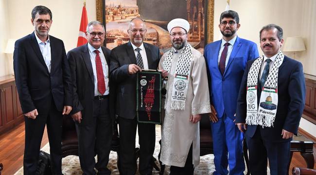 Diyanet İşleri Başkanı Prof. Dr. Ali Erbaş, Gazze İslam Üniversitesi Mütevelli Heyeti Başkanı Nasreddin el-Mezaini ve beraberindeki heyeti kabul etti.