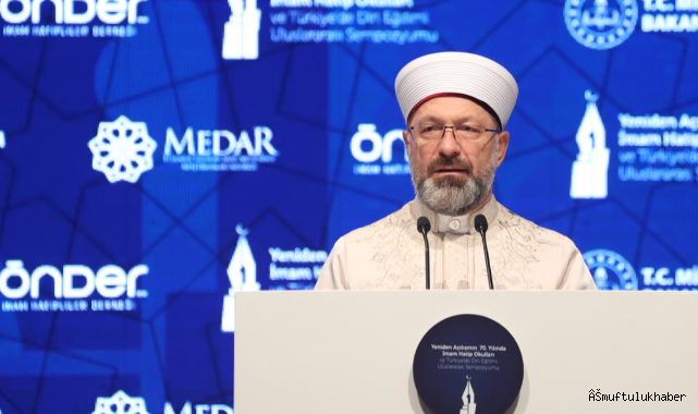 Diyanet İşleri Başkanı Prof. Dr. Ali Erbaş ise yaptığı konuşmada, İmam Hatip Okullarının 70. Yılı münasebetiyle gerçekleştirilen bu sempozyumun hayırlı sonuçlara vesile olması temennisinde bulundu.