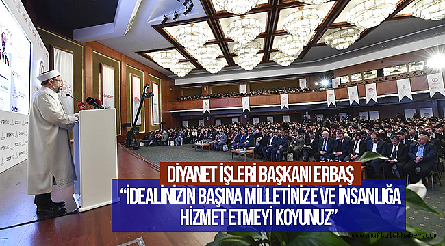 Diyanet İşleri Başkanı Prof. Dr. Ali Erbaş, ÖNDER İmam Hatipliler Derneği tarafından Kızılcahamam'da düzenlenen “Kültür ve Gençlik Politikaları Kurultayı”nda konuştu.Diyanet İşleri Başkanı Erbaş, gençlerle buluşmanın çok büyük önem ve mana taşıdığını belirterek, “İmam Hatip mefkûresi ve geleneği bu topraklar için tarihî bir öneme sahiptir” dedi.Başkan Erbaş, imam hatiplilerin inancı, vatanı, mukaddesatı, değerleri uğruna Çanakkale'den Kahramanmaraş'a, Sakarya'dan Sarıkamış'a tarihin en büyük destanlarından birini yazan milletin, yüreğindeki inancının, mücadele ruhunun, azminin, umudunun ve gelecek heyecanının temsilcisi bir nesil olduğunu söyledi.İmam hatip neslinin, milletimizin ruh kökü, inanç, maneviyat iklimi olduğunu kaydeden Başkan Erbaş bu nesil için “Anadolu’nun saf, temiz geleneğinin ve düşüncesinin yansımasıdır” ifadesini kullandı.“Aziz milletimizin İmam Hatiplere teveccühünün sebeplerini iyi anlamalıyız”İmam Hatiplere teveccühün sebeplerini iyi anlamak ve o ideali canlı tutmak gerektiğini belirten Başkan Erbaş, İmam Hatip okullarıyla ilgili şunları söyledi:“Bu okullar, hayatın ve varoluşun gayesini idrak eden, kendine, topluma, çevreye ve Rabbine karşı sorumluluklarının farkında olan, bütün insanlığın huzur ve güvenini isteyen bir nesil hedefinin amacının neticesidir. İmam Hatipler, tarihini bilen, yaşadığı zamanın künhüne varan, gelecek tasavvuru yapabilen ve geleceğe umutla bakan; büyük idealleri olan ama bu ideallerin peşinde koşarken başkalarının haklarını, zarafeti ve saygıyı asla ihmal etmeyen bir nesil idealinin ürünüdür. İmam Hatipler, İslam’ın bütün değerlerini en doğru şekilde bilen ve özümseyen, bütün söz ve davranışlarında sadece ve sadece âlemlerin Rabbinin hoşnutluğunu arayan, milletin manevi hayatına rehberlik eden bir nesil gayretinin neticesidir. İmam Hatipler, bilgi ile hikmeti bütünleştiren, hayatı anlamlı kılan değerlerle hayatı kolaylaştıran bilimsel gelişmeleri birlikte öğrenen ve insanlığa hizmete dönüştüren bir nesil idealinin neticesidir. İmam Hatipler, sevgi ve kardeşliği temel değer bilen, güven veren, güvenilen, şiddetin ve anarşinin uzağında, zulmün karşısında mazlumun her daim yanında, ‘Gencin süsü güzel ahlaktır’ prensibini ilke edinen bir nesil özleminin sonucudur.”İmam Hatipliler neslinin bir ferdi olduğu için gurur duyduğunu ifade eden Başkan Erbaş, “Çünkü İmam Hatipliler nesli, var olduğu günden beri, en zor zamanlarında bile vatanına milletine, devletine, insanlığa hizmette hiçbir fedakârlıktan geri durmamıştır” diye konuştu.“İslam medeniyeti, merhametin, güzel ahlakın, bir arada yaşamanın en güzel örnekleriyle doludur”Peygamber Efendimizin ideal Müslümanı, elinden ve dilinden emin olunan kimse olarak tarif ettiğini kaydeden Başkan Erbaş, İmam Hatip neslinin de barış insanı olma ve ideal bir Müslüman olma yolunda gayret ettiğini ifade etti.Müslümanın düşünce ve ahlakının iki büyük ve önemli boyutunun, Yaratana itaat ve teslimiyet ile yaratılana karşı şefkat ve merhamet olduğunu hatırlatan Başkan Erbaş, “İşte bu inançla, Kur’an ve sünnetin izinde kurulan İslam medeniyeti, merhametin, güzel ahlakın, bir arada yaşamanın en güzel örnekleriyle doludur” dedi.Müslümanların tarih boyunca hâkim oldukları coğrafyalarda ve dönemlerde hep hukukun ve adaletin teminatı olduklarına dikkat çeken Başkan Erbaş, “Din, dil, ırk, renk ayrımı yapmaksızın herkesin temel hak ve özgürlüklerini dokunulmaz kabul etmişler, Yaratana itaat ve yaratılana merhamet ahlakının en güzel örneklerini sunmuşlardır. Esasında bugün insanlığın en büyük sorunu bu ahlak ve hukuku ihmal etmesi, hatta kaybetmesidir” ifadelerini kullandı.“Dünyayı, kaybettiği ve muhtaç olduğu değerlerle buluşturmak, iman ve kulluk sorumluluğumuzdur”Yaşanan savaşların, kaosların, bireysel ve küresel krizlerin temelinde insanın kendine yabancılaşması, yaratılış gayesini unutması ve Rabbine kayıtsız kalmasının olduğunu belirten Başkan Erbaş, “Dünyayı, kaybettiği ve muhtaç olduğu değerlerle buluşturmak ise yine sizlere ve bizlere düşmektedir. Hatta bizim iman ve kulluk sorumluluğumuzdur” dedi. “İyiliklerin çoğalması ve kötülüklerin azalması için gayret edelim”“Hem kendinizin hem de toplumun ve bütün insanlığın iyiliği için şu hususları önemsemenizi özellikle tavsiye ediyorum” diyen Başkan Erbaş, gençlere şu tavsiyelerde bulundu:“İnancınızı sahih bilgiler üzerine bina etmelisiniz. İslam’ın şefkat, merhamet, hakkaniyet, güzel ahlak ve bir arada yaşama ilkeleri sizin elinizle ve gayretlerinizle dünyanın her yerine ulaşmalıdır. İnsanın değeri peşinden gittiği şeyle ölçülür. İnsan ideali kadardır. İdealiniz sadece kendinizle ilgili olmasın. İdealinizin başına milletinize ve insanlığa hizmet etmeyi koyunuz. Okumak, farklı alanlarda bilgi sahibi olmak sürekli uğraşınız olsun. Bilgiye sahip olanlar dünyayı yönetir. İslam medeniyeti, bir bilgi ve ilim medeniyetidir. Bilgi üretmeyenler, üretilen bilginin takipçisi hatta mahkûmu olmaya mecburdur. Yakın tarihi, son iki asırdır dünyada yaşanan gelişmeleri, birlik ve beraberliğimizi zedeleyen etkenleri bilmeliyiz. Bir arada yaşama ahlakına halel getiren, zarar veren ırk, din, mezhep, meşrep ve ideoloji üzerinden tefrika faaliyetlerine karşı uyanık ve bilinçli olmalıyız. Gencin süsü güzel ahlakıdır. En küçük davranışlarınızda bile, edep, nezaket ve zarafeti asla ihmal etmeyiniz. Bütün imkânlarınızla, bildiğiniz ve yaşadığınız güzelliklerin hayata taşınması, iyiliklerin çoğalması ve kötülüklerin azalması için gayret edelim. Faydalı çalışmalara