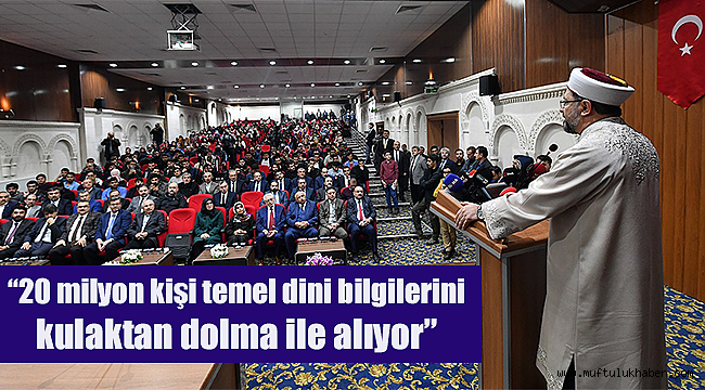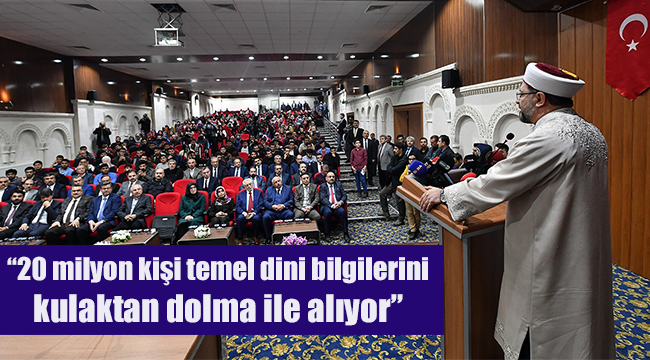 “20 milyon kişi temel dini bilgilerini kulaktan dolma ile alıyor” Yapılan bir kamuoyu araştırmasını paylaşan Erbaş, “Sokaktaki vatandaşlara ‘temel dini bilgileri nereden aldınız?’ diye sorulduğunda, yüzde 15’i imam hatip liseleri ile ilahiyat fakültelerinden. Yani örgün din eğitimi alanların oranı yüzde 15’lerde. Peki, bu kalan yüzde 85 din eğitimi nereden alıyor? Bunun yüzde 50 kadarı yaz Kur’an kurslarından alıyor. Geriye kalan yüzde 50’si ise temel dini bilgilerini kulaktan dolma ile alıyor. Araştırma önümüzde, bu az bir rakam değildir. Nereden baksanız 20 milyon nüfustur. Bu nüfus Müslüman nüfustur. Bu gerçekten bizi sıkıntı sokuyor. Yaşadığımız olayları görüyorsunuz. Doğru dini bilgiyi bizim insanımıza ulaştırmamız lazım” diye konuştu.