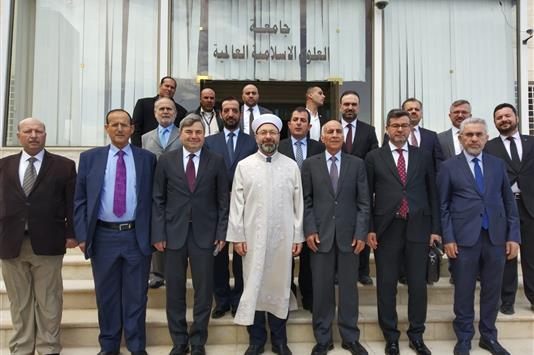 Türkiye’de 200’ün üzerinde üniversite olduğunu bunların 102 tanesinde ise İlahiyat fakültesinin bulunduğunu anlatan Başkan Erbaş, İlahiyat fakültelerinde Arapça eğitiminin çok iyi olması gerektiğini belirtti. Başkan Erbaş, “Çünkü ulum-u İslamiye'nin kaynak dili Arapça'dır. (Onun için) Bu temel Arapça bilgisini elde etmek için biz Arapça konuşulan ülkelere öğrenci göndermek istiyoruz. Bu konuda Ürdün’ü de tercih ediyoruz. Türkiye’de Yüksek Öğrenim Kurumu tarafından Müslüman ülkeler arası öğrenci değişimini sağlamak için Mevlana Programı oluşturuldu” diye konuştu.İslami Bilimler Üniversitesi Rektöre Prof.Dr. Suleyman Fudeyl El-Budur ise ziyaretten büyük memnuniyet duyduğunu belirtti. Öğrencilerinin 8 bininin başka ülkelerden gelen öğrencilerden olduğunu ifade eden rektör El-Budur, “Üniversitemizin amacı İslam’ı öğretmektir. Orta Asya’dan, Avrupa’dan, Balkan ülkelerinden öğrencilerimiz var” şeklinde konuştu.Başkan Erbaş, ziyaretin ardından üniversitede öğrenim gören Türk öğrencilerle sohbet etti.Başkan Erbaş, Ürdün Üniversitesi’ndeBaşkan Erbaş’ın İslami Bilimler Üniversitesinin ardından ikinci durağı Ürdün Üniversitesi oldu. Rektör Abdel Karim Al Qudah ve üniversite yönetimi ile bir araya gelen Başkan Erbaş, dini ilimlerle müsbet ilimlerin bir arada yapılmasının Müslümanların takip ettikleri bir metod olduğunu belirtti.Ürdün’deki üniversitelerle Türkiye’deki üniversiteler arasında tecrübe paylaşımını geliştirmek gerektiğini ifade eden Başkan Erbaş, iki ülke üniversitelerinin birbirinden istifade etmesinin önemine dikkat çekerek, “Eğer bu işbirliğini yapabilirsek her iki ülke açısından öğrencilerin daha iyi yetişmesine yardımcı oluruz” ifadelerini kullandı.