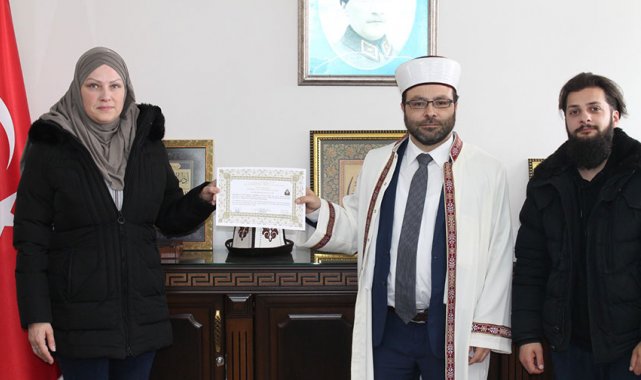 Alman vatandaşı Franziska Stefanie, Sakarya Erenler İlçe Müftülüğünde düzenlenen törende Kelime-i Şehadet getirerek Müslüman oldu.