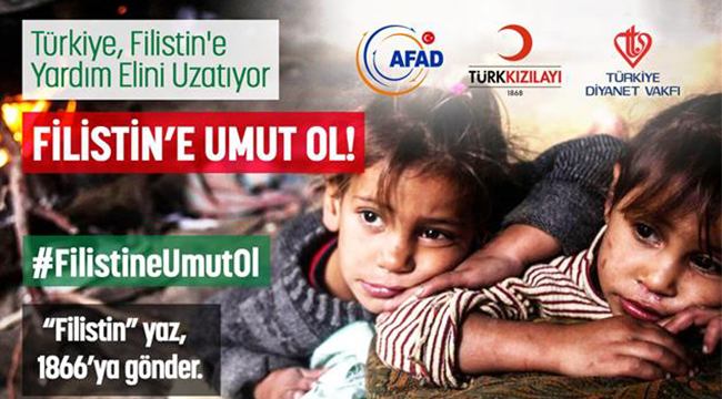 İsrail'in Gazze'de sebep olduğu işgal ve çatışma ortamı nedeniyle Filistin'de can ve mal kaybı şiddetini artırarak devam etmektedir. Filistin halkının büyük bir kısmı açlık, susuzluk ve sağlık problemleriyle mücadele etmektedir.Türkiye Cumhuriyeti, halkımızın da beklentileri doğrultusunda; dost ve kardeş Filistin halkının karşı karşıya bulunduğu sıkıntıların hafifletilmesine katkıda bulunmak amacıyla gerekli her türlü yardım ve desteği sağlayacaktır. Bu amaçla Başbakanlık tarafından bir yardım kampanyası başlatılmıştır.Milletimizin bir insanlık görevi olan bu yardım kampanyasına gönüllü olarak her türlü desteği vereceklerine inancımız tamdır.Tüm kamu kurum ve kuruluşlarımızca toplanan yardımlar ekte belirtilen hesap numaralarına aktarılacaktır.FİLİSTİN İNSANİ YARDIM KAMPANYASI HESAP NUMARALARIT.C.ZİRAAT BANKASI KAMU GİRİŞİMCİ ŞUBESİTL-Hesap IBAN NoTR200001002533555555555073ABD Doları Hesap IBAN NoTR900001002533555555555074EURO Hesap IBAN NoTR630001002533555555555075Banka Swift Kod NoTCZBTR2A T.VAKIFLAR BANKASI A.O. TUNALI HİLMİ ŞUBESİTL-Hesap IBAN NoTR120001500158007294531452ABD Doları Hesap IBAN NoTR060001500158048011048733EURO Hesap IBAN NoTR430001500158048011048746Banka Swift Kod NoTVBATR2AXXX T.HALK BANKASI A.Ş. BAKANLIKLAR ŞUBESİTL-Hesap IBAN NoTR720001200940800005000225ABD Doları Hesap IBAN NoTR610001200940800058000253EURO Hesap IBAN NoTR340001200940800058000254Banka Swift Kod NoTRHBTR2AT.C.ZİRAAT KATILIM BANKASI ANKARA KURUMSAL ŞUBESİTL-Hesap IBAN NoTR220020900000412303000001ABD Doları Hesap IBAN NoTR920020900000412303000002EURO Hesap IBAN NoTR650020900000412303000003Banka Swift Kod NoZKBATRISXXXT.VAKIF KATILIM BANKASI A.Ş. ANKARA KURUMSAL ŞUBESİTL-Hesap IBAN NoTR360021000000016349000002ABD Doları Hesap IBAN NoTR520021000000016349000102EURO Hesap IBAN NoTR950021000000016349000104Banka Swift Kod NoVAKFTRISXXX