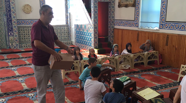 Gelibolu Müftülüğü hayırsever vatandaşların desteğiyle yaz Kur’an kursu öğrencilerine dondurma ikram etti.